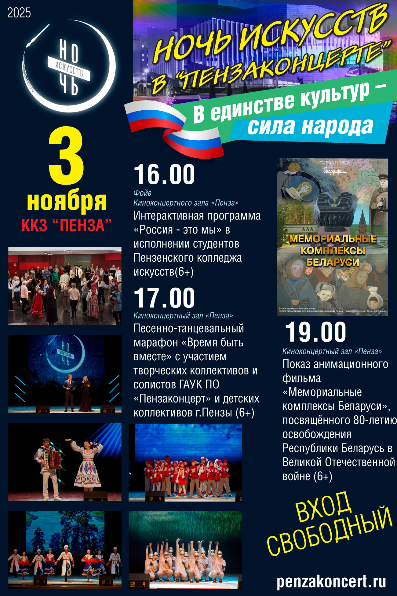 16.00 (фойе ККЗ «Пенза») – интерактивная программа « Россия-это мы» в исполнении студентов Пензенского колледжа искусств;