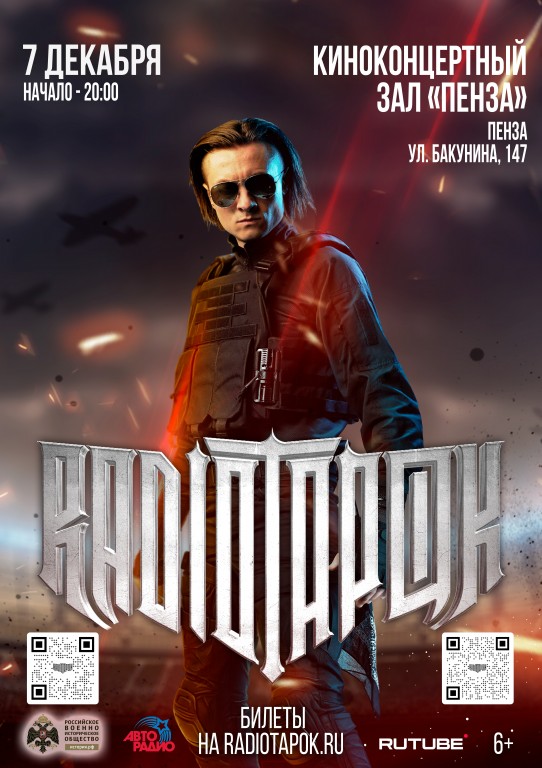 RADIO TAPOK едет в Пензу! На выступлении каждый зритель сможет окунуться в отечественную историю под тяжелые гитарные рифы, и всё это пройдет в захватывающей атмосфере большого концерта с пиротехническим и световым шоу.