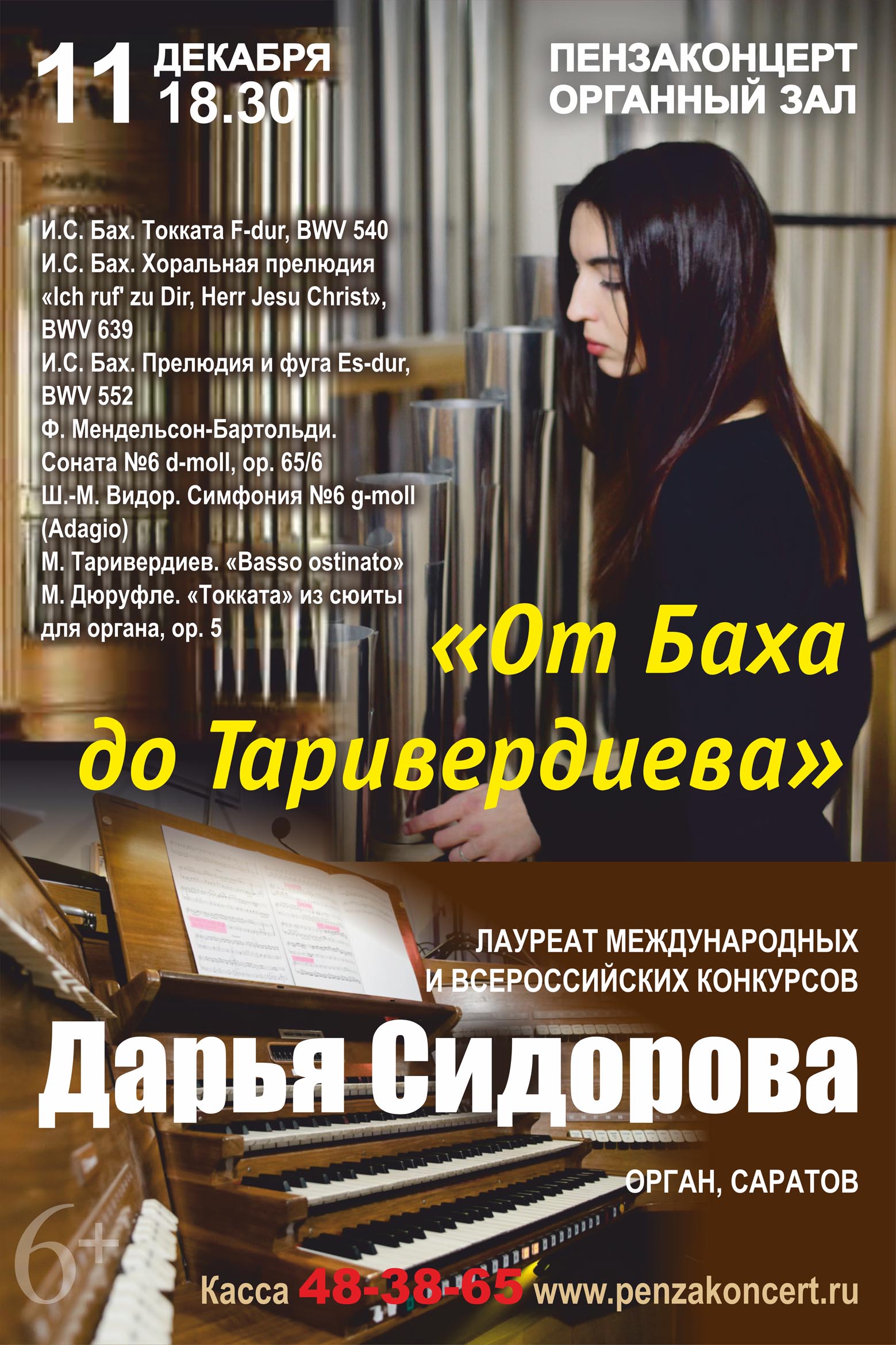 Лауреат международных и всероссийских конкурсов, выпускница Саратовской государственной консерватории имени Л.В. Собинова Дарья Сидорова представляет программу «От Баха до Таривердиева».