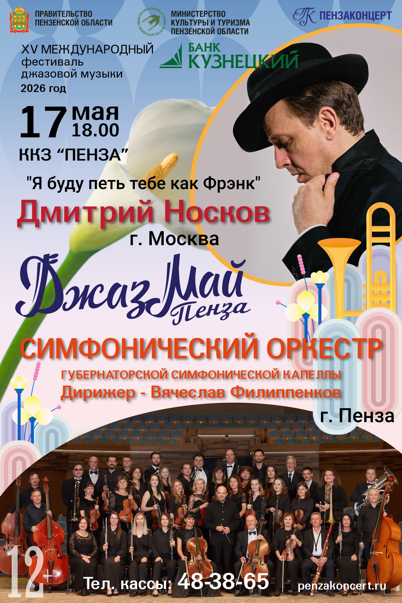 Во второй день фестиваля джазовой музыки «Джаз Май Пенза - 2026» Дмитрий Носков приглашает в захватывающее путешествие сквозь время в сопровождении симфонического оркестра Губернаторской симфонической капеллы под управлением заслуженного артиста Пензенской области Вячеслава Филиппенкова.