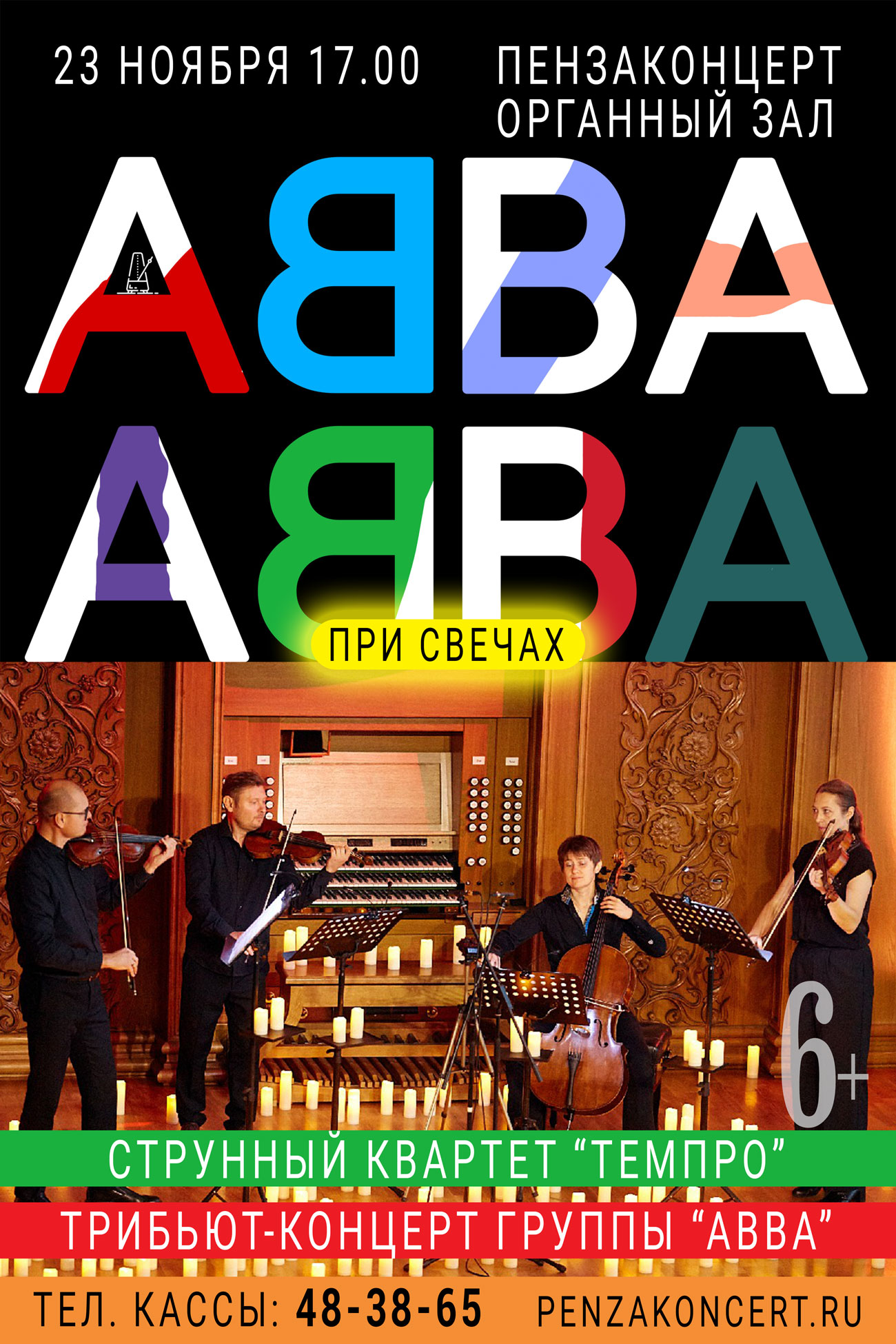 Струнный квартет «Темпро» приглашает вас на особенный вечер в Органном зале филармонии. прозвучат лучшие произведения легендарного ансамбля ABBA в изысканных переложениях для струнного квартета. В свете сотен свечей зазвучат всемирно известные хиты — «Mamma Mia», «Dancing Queen», «The Winner Takes It All», «Money, Money, Money» и другие. Знакомые мелодии предстанут в новом художественном свете — камерном, благородном и проникновенном. Музыка, покорившая миллионы сердец, соединится с красотой струнного звучания и атмосферой свечей, создавая по-настоящему неповторимое музыкальное событие.