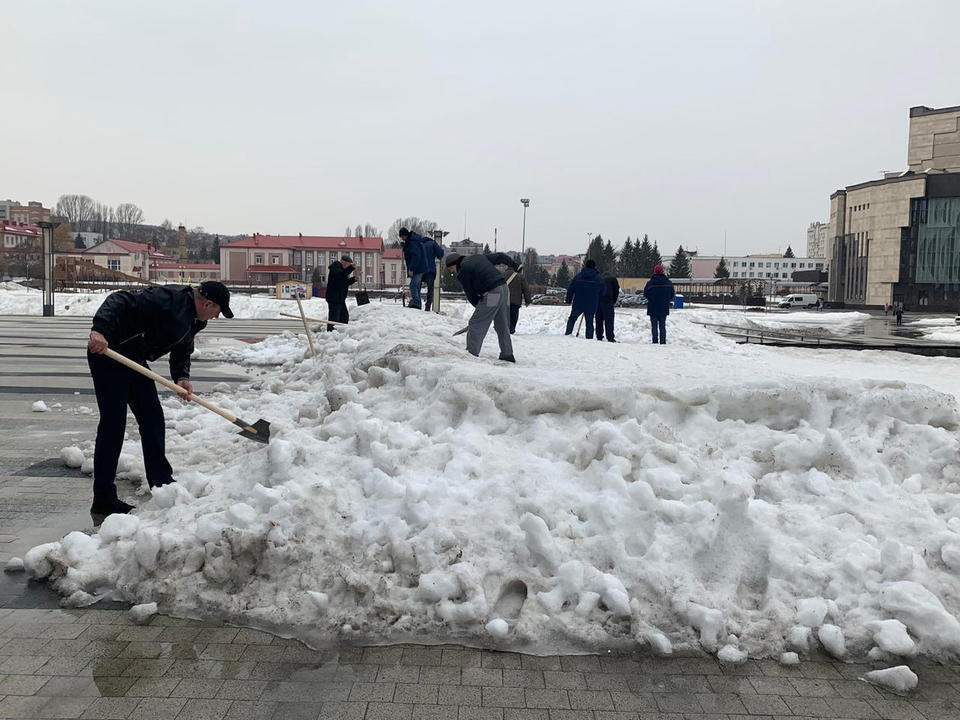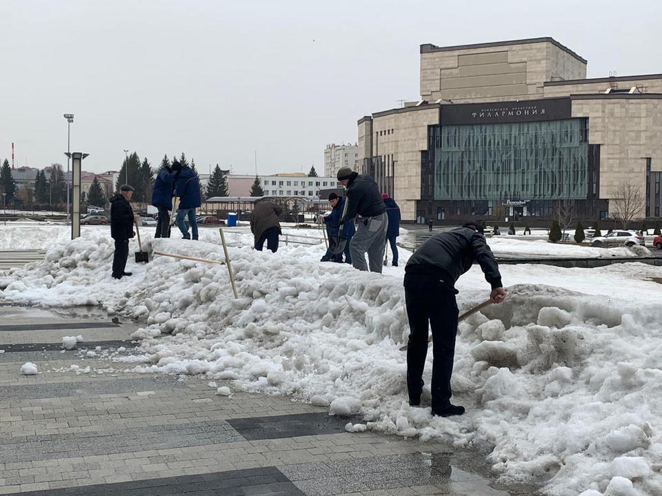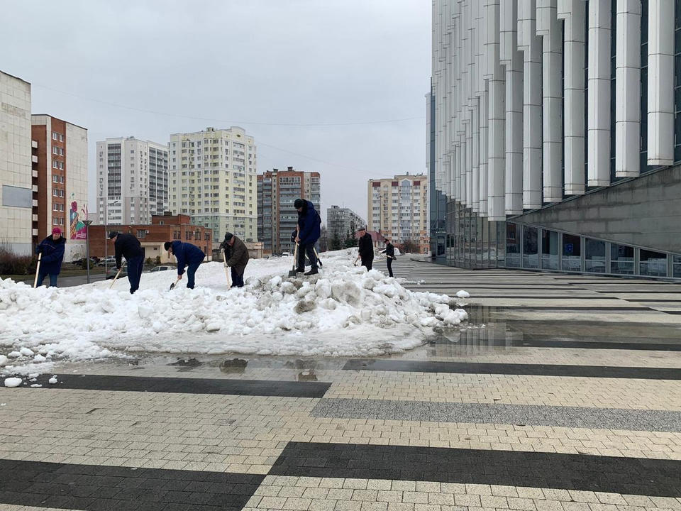 Были проведены работы по удалению наледи и ворошению снега, убран мусор.