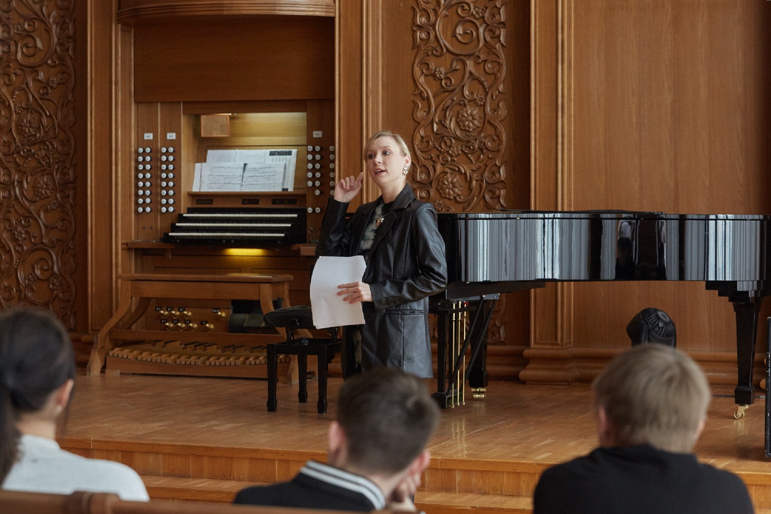 Экскурсия по филармонии – это не только увлекательный рассказ, но и возможность увидеть и услышать главное богатство филармонии – его величество Орган. Солистка «Пензаконцерта» Софья Семьянова исполнила для ребят классические произведения, написанные специально для органа.