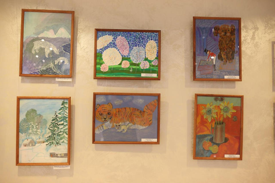 На выставке представлены работы как юных воспитанников, так и взрослых начинающих художников, ведь для того, чтобы заняться творчеством, никогда не поздно!