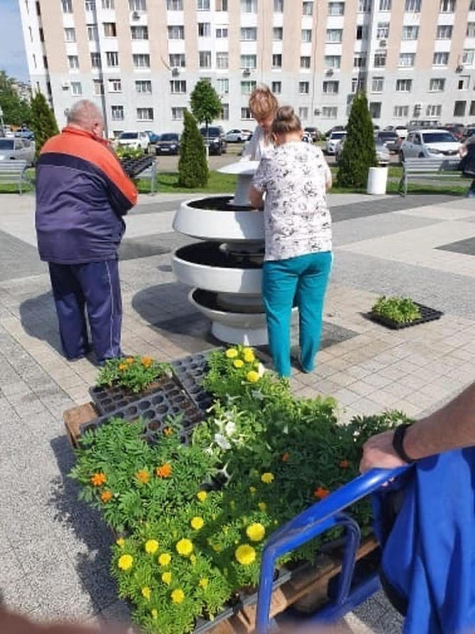 1 июня сотрудники учреждения культуры высадили цветы в вазоны на Юбилейной площади. И теперь одно из любимых горожанами мест для отдыха украшают яркие бархотки и петунии.