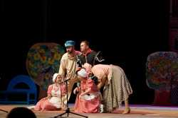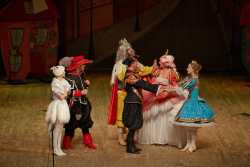В основе спектакля — всем известная сказка Шарля Перро «Кот в сапогах», повествующая об удивительных приключениях отважного, доброго, озорного кота Барсильона и королевской кошечки Мурр-мяу.