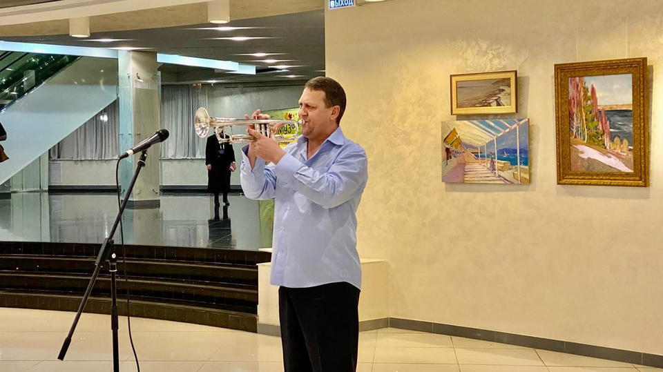 Музыкальный подарок зрителям преподнёс артист ансамбля песни и танца «Казачья застава» Александр Мереняшев (труба).
