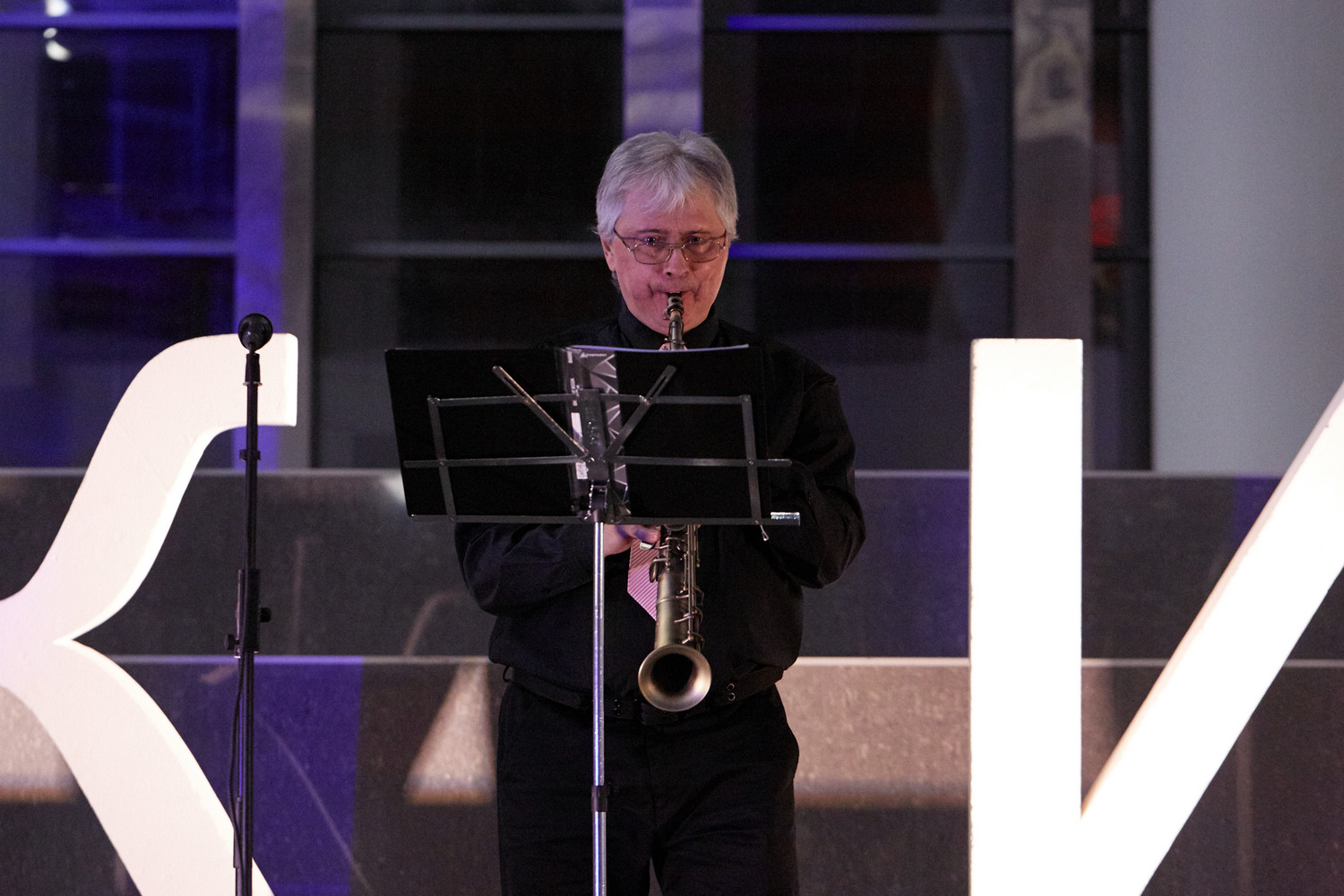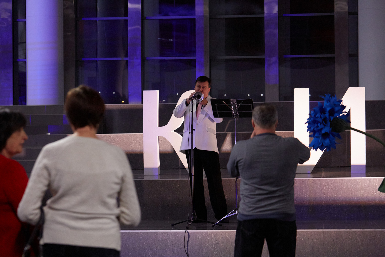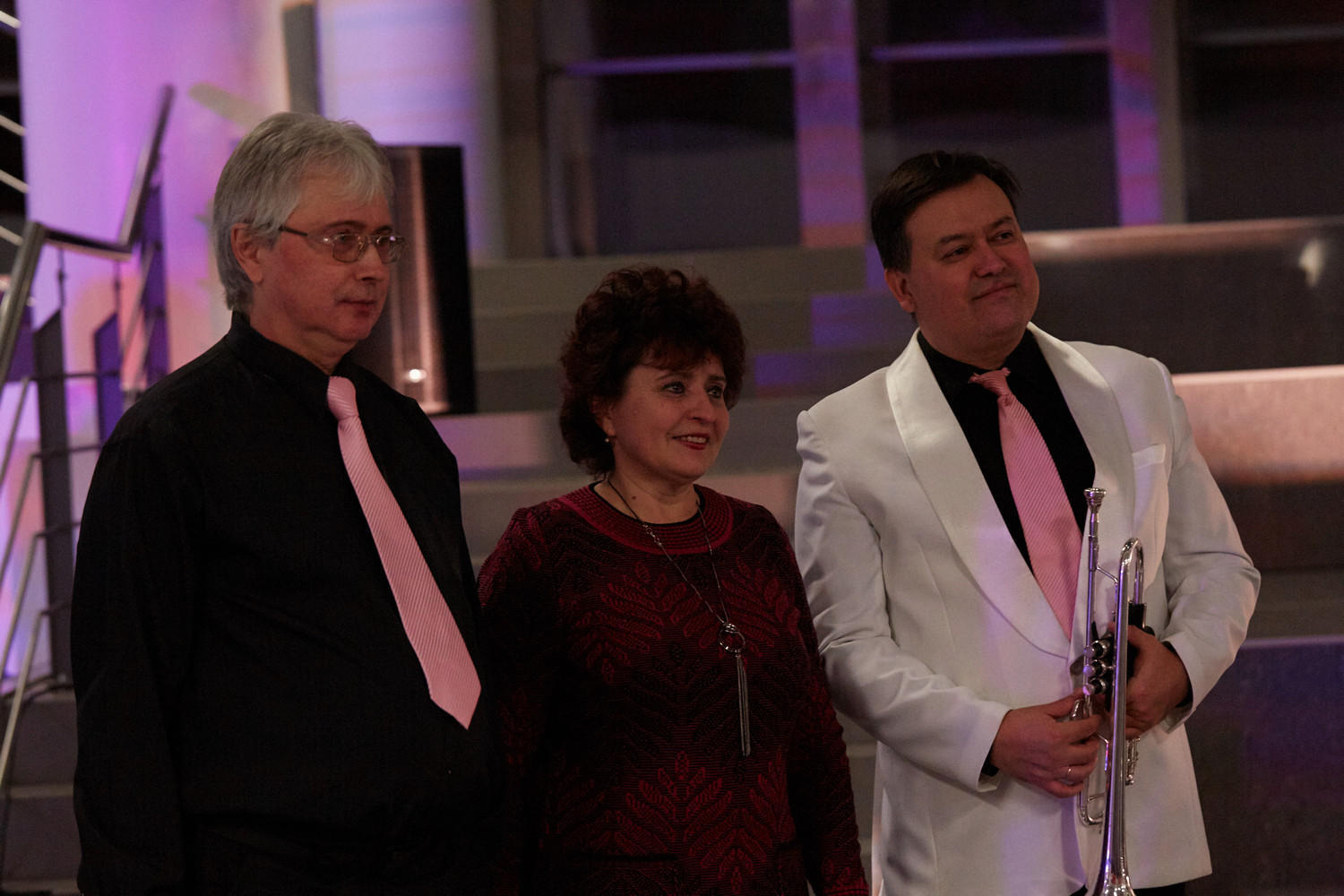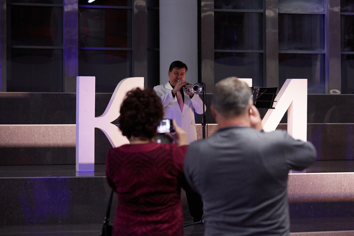 Перед началом торжественного мероприятия в фойе ККЗ гостей по традиции встречали артисты «Пензаконцерта» с программой «Добро пожаловать!» – руководитель и музыкант эстрадно-джазового ансамбля «Экспресс-бэнд» Юрий Белоногов (труба) и Дмитрий Киселев (саксофон).