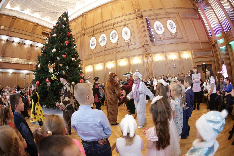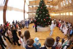 В Органном зале филармонии ансамбль русской этнической музыки «Миряне» проводит с маленькими и большими гостями хоровод вокруг красавицы-ёлки. Артисты в сопровождении Волшебного Органа (Софья Семьянова) показывают увлекательное представление с песнями, танцами, конкурсами и вместе с ребятами встречают главных героев праздника – Деда Мороза и Снегурочку.