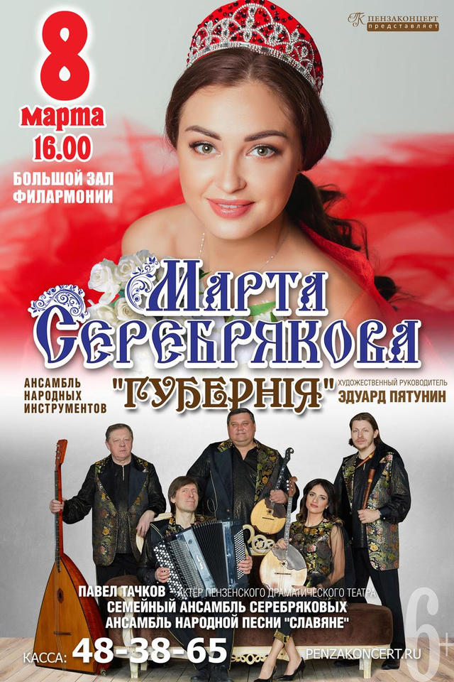 Открыты дополнительные продажи на концерт Марты Серебряковой и ансамбля русских народных инструментов «Губернiя», который состоится 8 марта в Большом зале филармонии (6+)!
