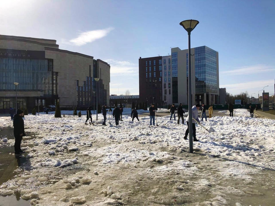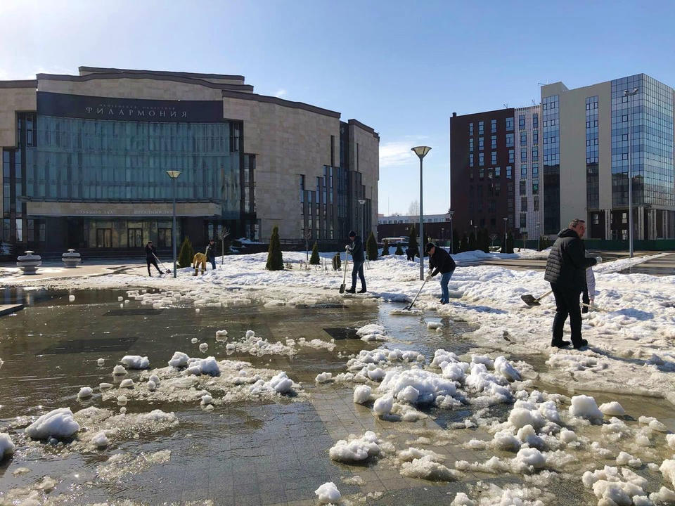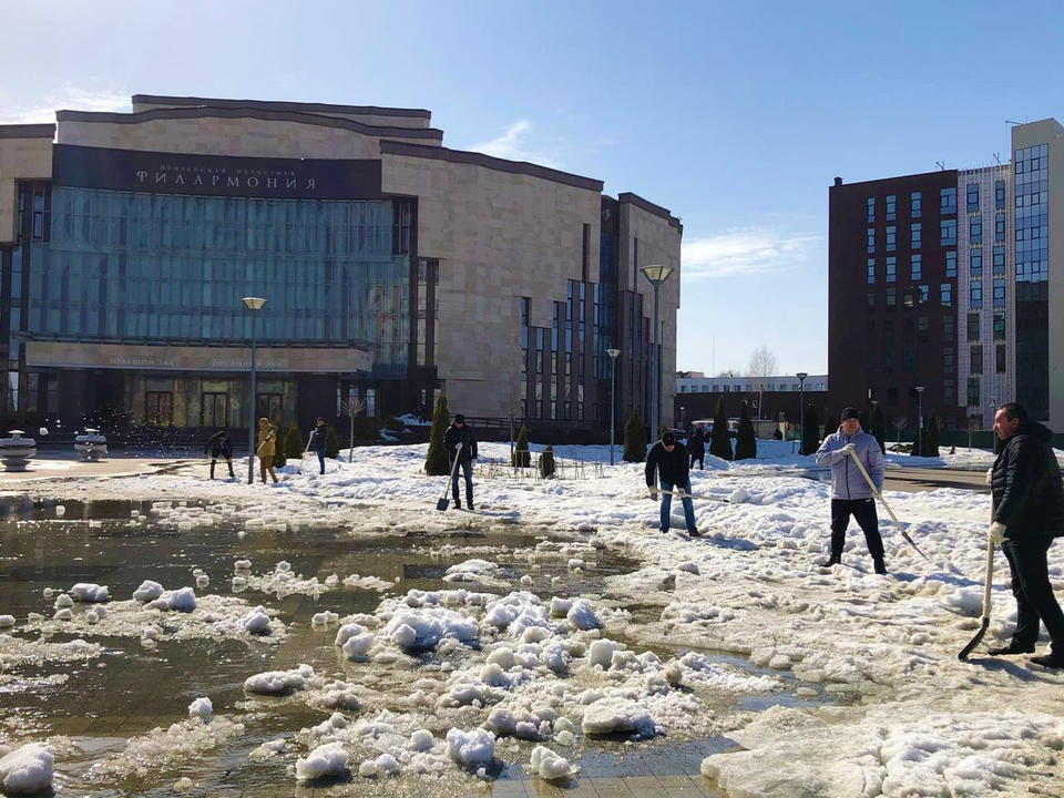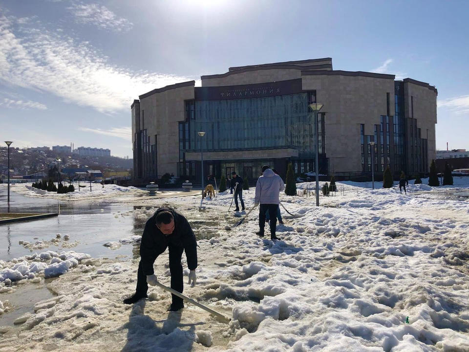 Сотрудники «Пензаконцерта» продолжают работы по ворошению снежных завалов, чтобы не допустить подтопления территории возле зданий филармонии и Киноконцертного зала «Пенза» в период активного таяния снега.