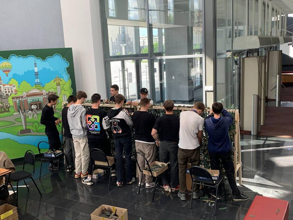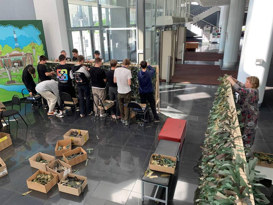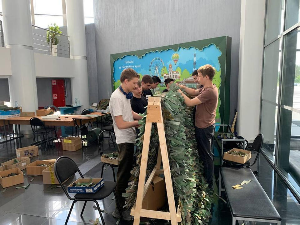 В фойе первого этажа киноконцертного зала «Пенза» уже три месяца ежедневно ведется работа по изготовлению необходимого элемента маскировки, в которой принимают участие неравнодушные пензенцы, в их числе: студенты Пензенского социально-педагогического колледжа, пенсионеры и артисты «Пензаконцерта». А на текущей неделе выступили с инициативой и приступили к работе студенты Пензенского ИТ-колледжа.