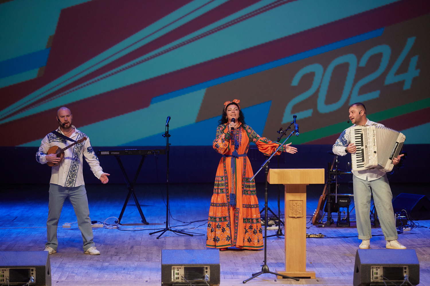 Продолжилось торжественное мероприятие праздничным концертом, в котором принял участие ансамбль «Злато-Серебро» (художественный руководитель Наталья Мещерякова).