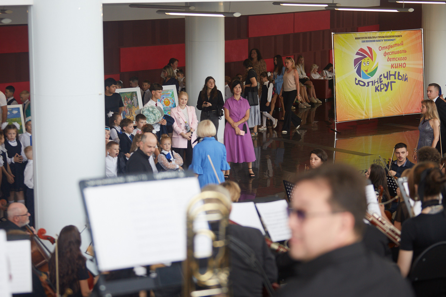 В фойе второго этажа гостей приветствовали оркестр и солисты Губернаторской симфонической капеллы п/у главного дирижера Вячеслава Филиппенкова Ольга Андреева, Гульсина Рафекова и Роман Бровиков. Артисты подготовили для пензенских школьников музыкальную детскую программу.