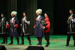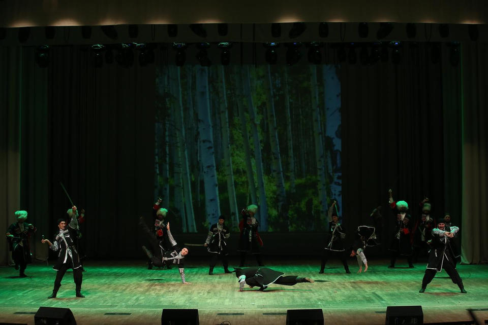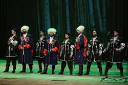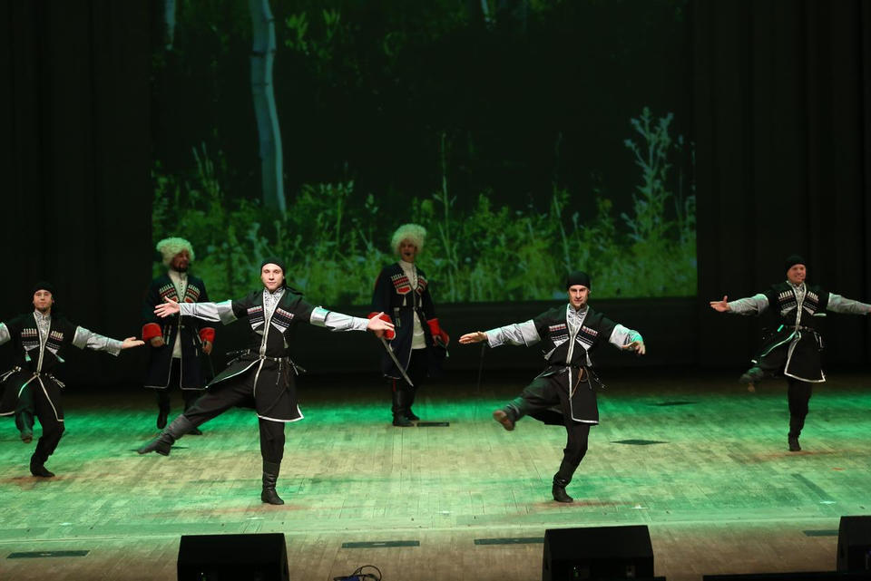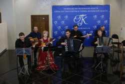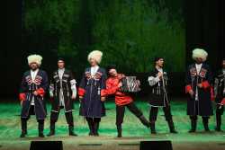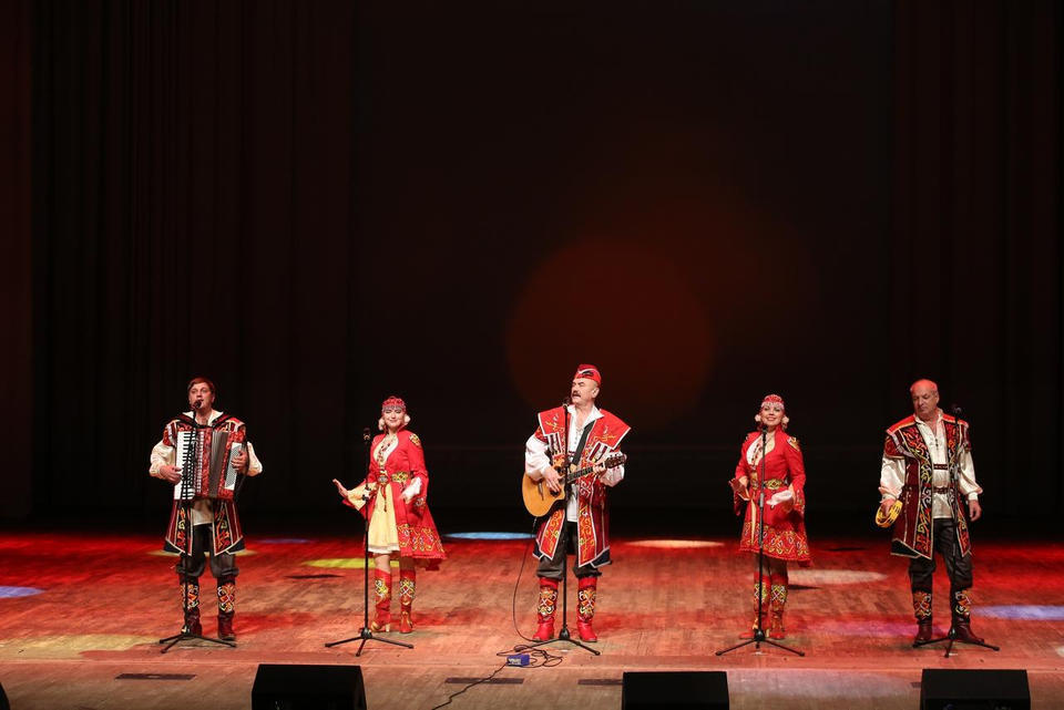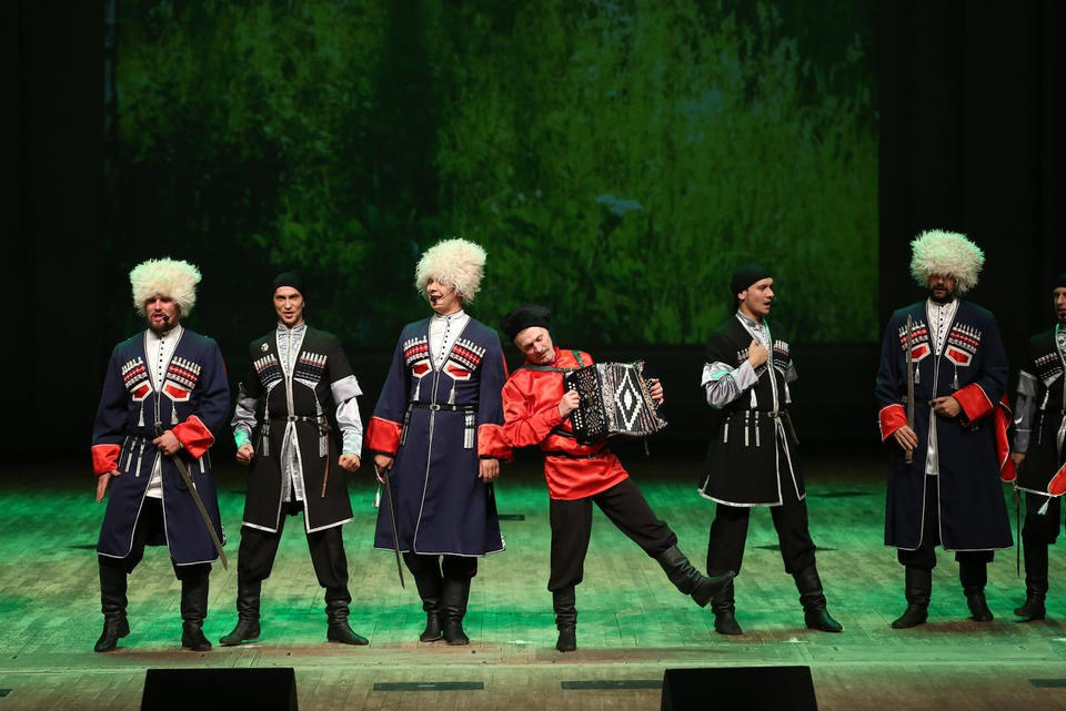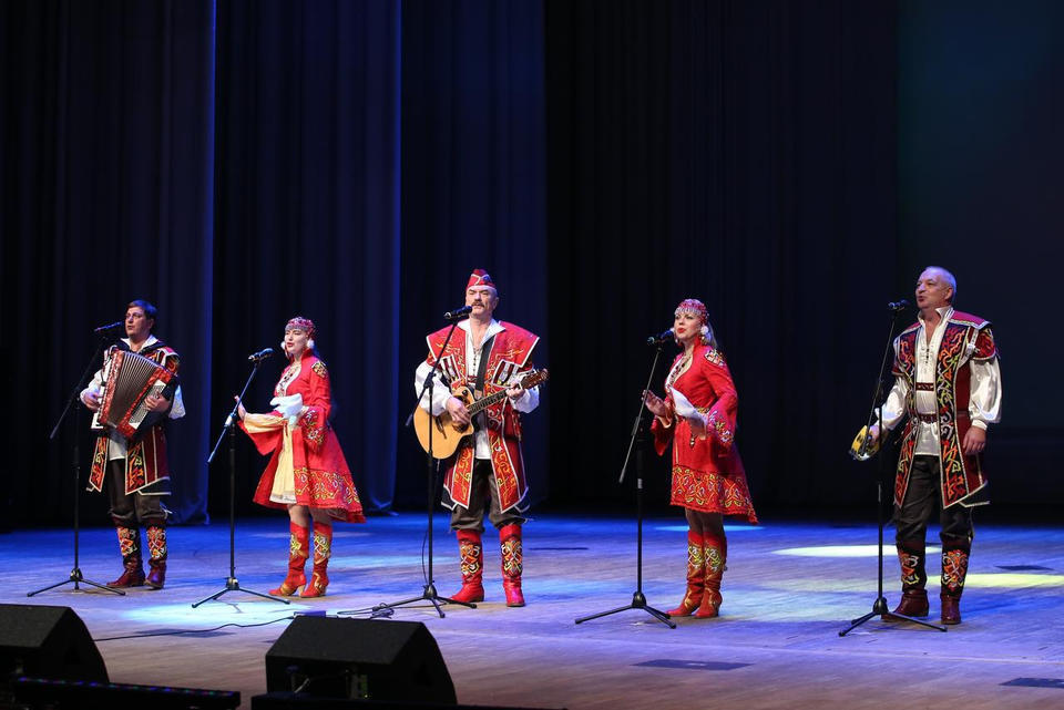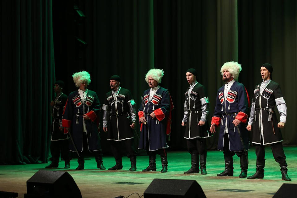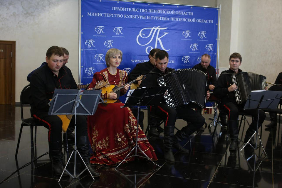 В фойе филармонии гостей торжественного собрания с программой «Добро пожаловать!» встречали артисты оркестровой группы ансамбля песни и танца «Казачья застава».