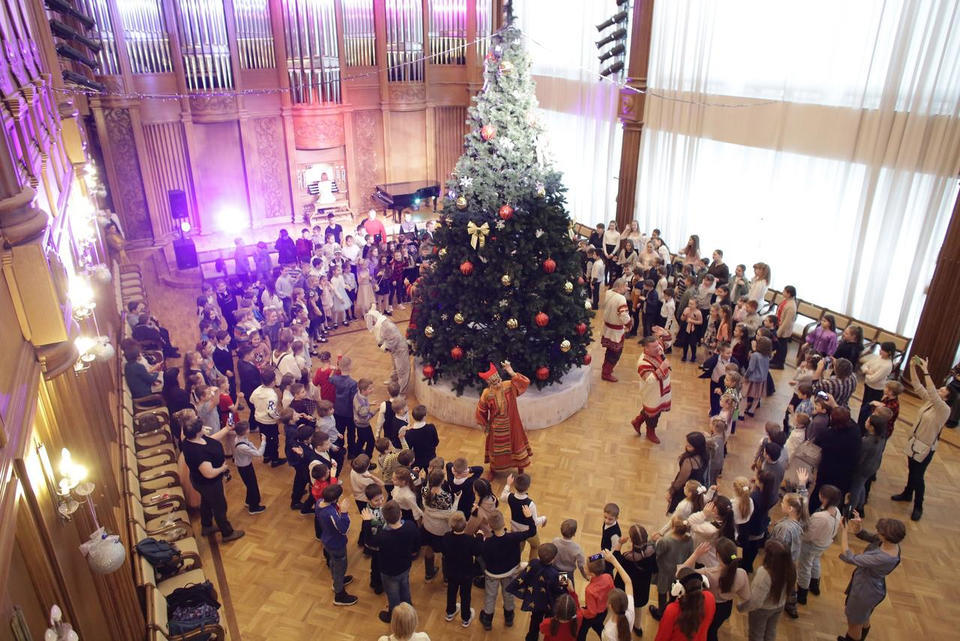 В Органном зале филармонии – возле ослепительной ёлки – Новогодний хоровод с Дедом Морозом и красавицей Снегурочкой для ребят проводят артисты ансамбля русской этнической музыки «Миряне» и солистка «Пензаконцерта» Софья Семьянова (орган).