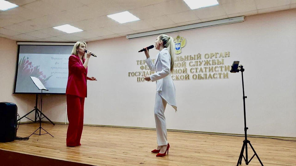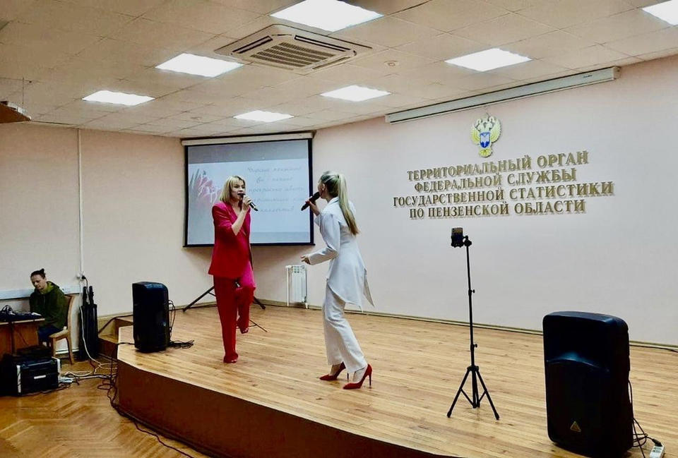 Светлана Бисяева, Анастасия Воробьёва и Александр Ренуар подготовили для сотрудников Пензастата праздничную концертную программу, в которую вошли популярные песни отечественной эстрады.
