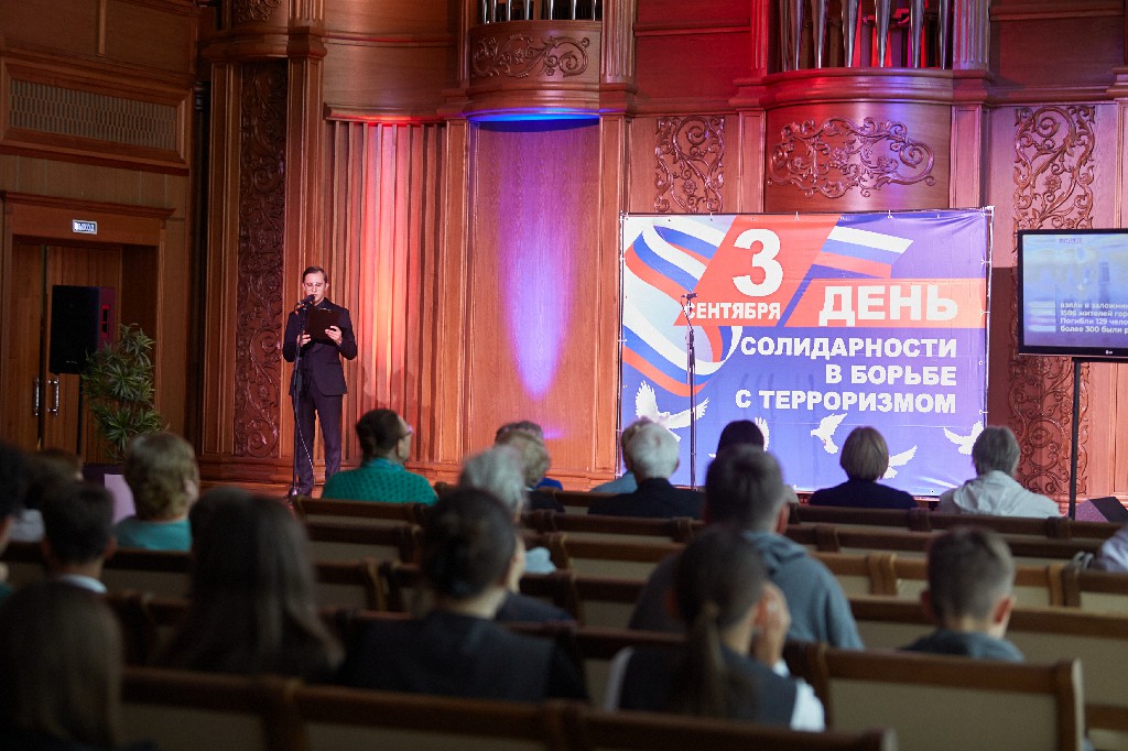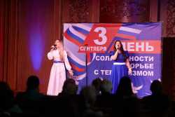 В честь памятной даты и в знак присоединения ко Дню солидарности сегодня в Органном зале филармонии состоялся тематический концерт,» в котором приняли участие: ансамбль песни и танца "Казачья застава", ансамбль «Злато-Серебро», солисты и художественный руководитель эстрадно-джазового ансамбля «Экспресс-бэнд» Светлана Бисяева, Ксения Овчинникова, Александр Яковлев и Юрий Белоногов, солисты Евгения Тарасова и Сергей Князев.