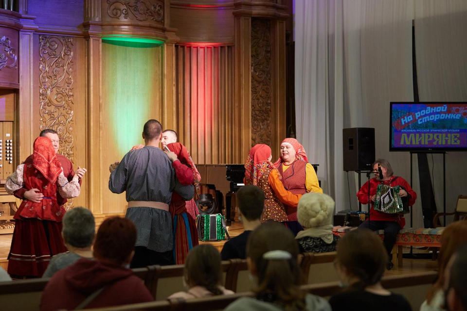 Ансамбль русской этнической музыки «Миряне» (руководитель – Заслуженный работник культуры России Елена Пыкова) выступил с сольным концертом. 3 декабря в Органном зале филармонии коллектив представил программу «На родной сторонке».
