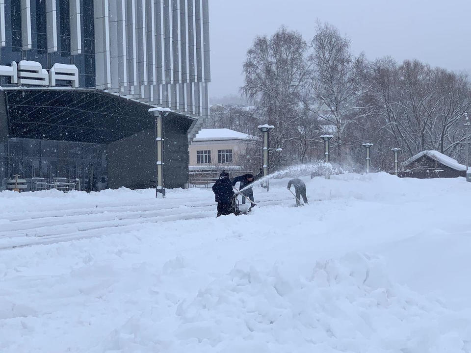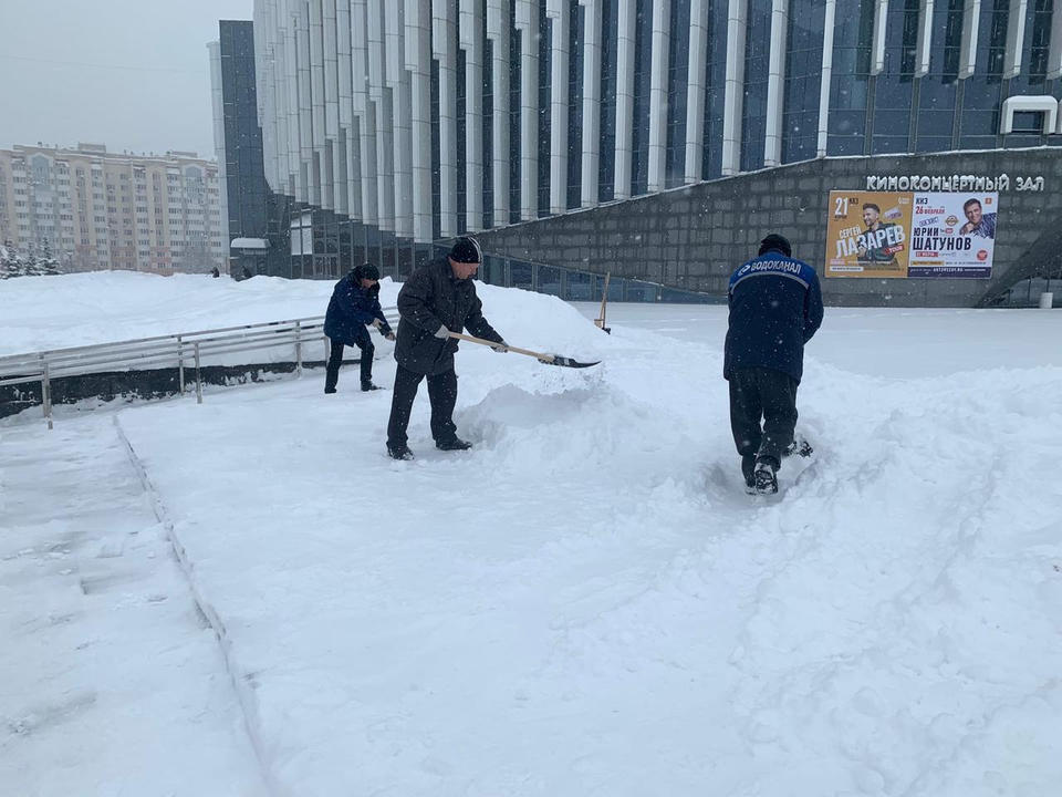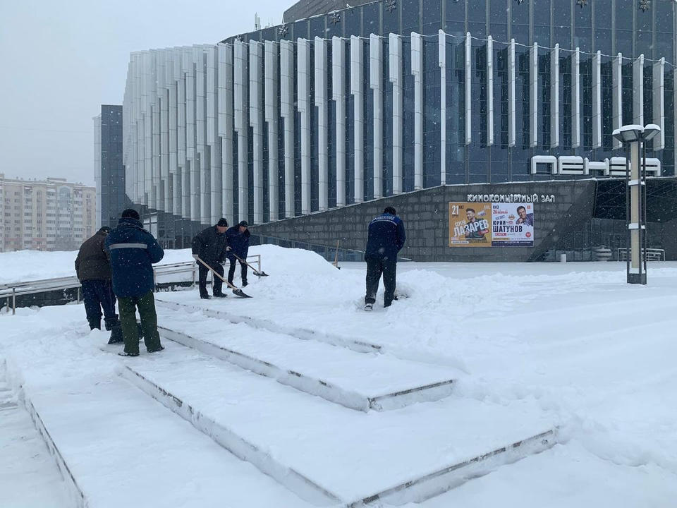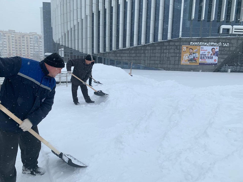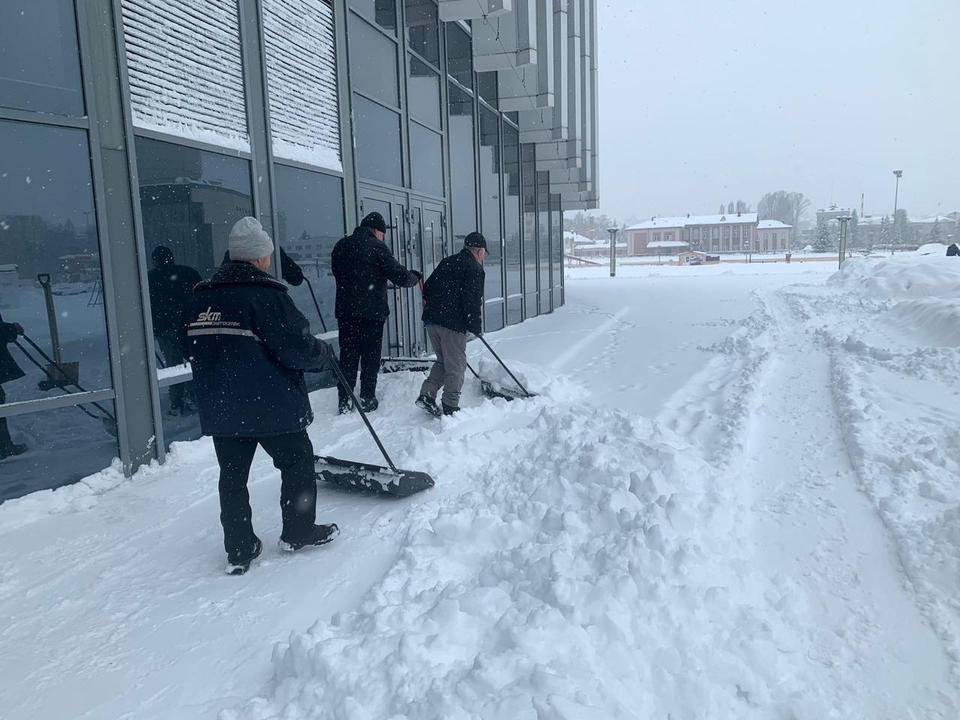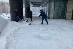 Вместе с техническим персоналом участие в работах принимают сотрудники других отделов, расчищая от снега территории возле центрального входа в здания, пандусы, зону у кассового зала.