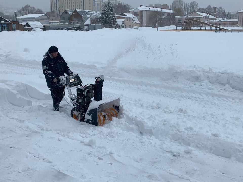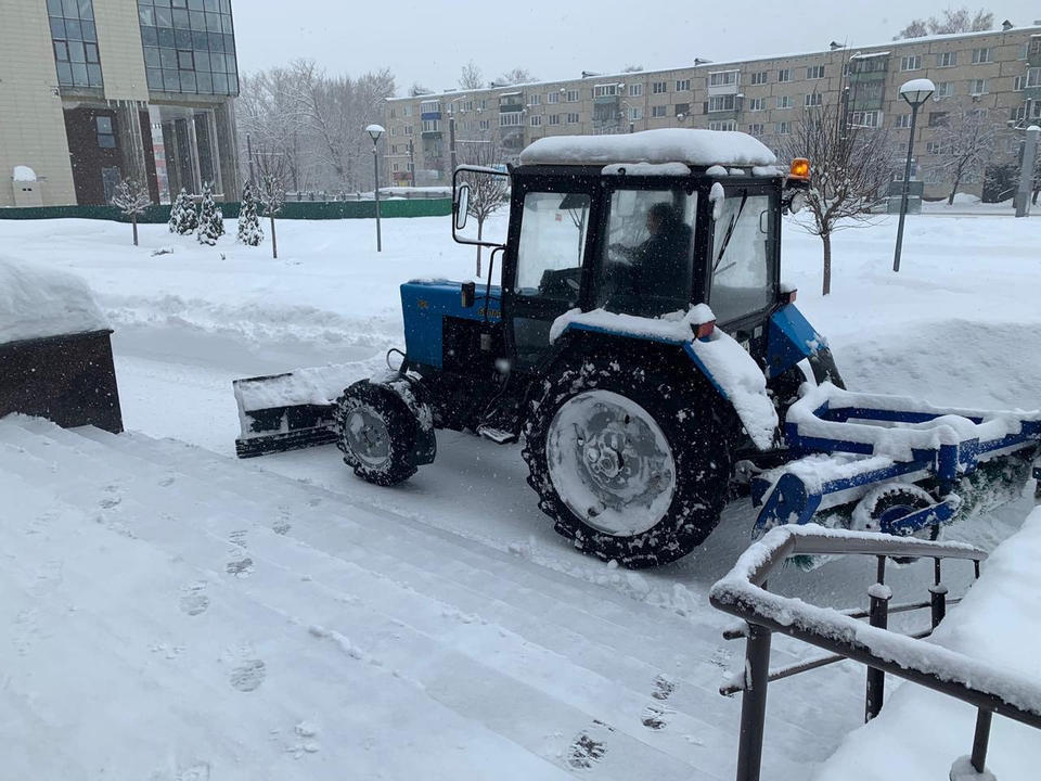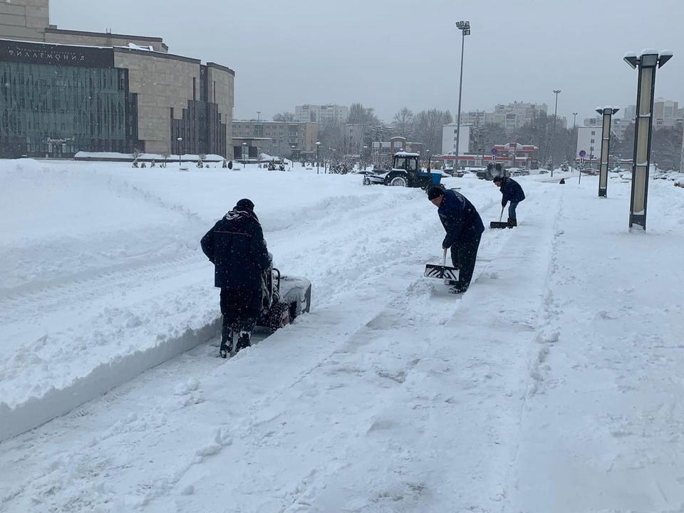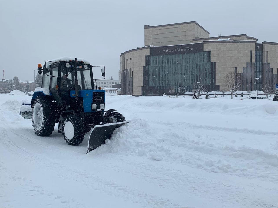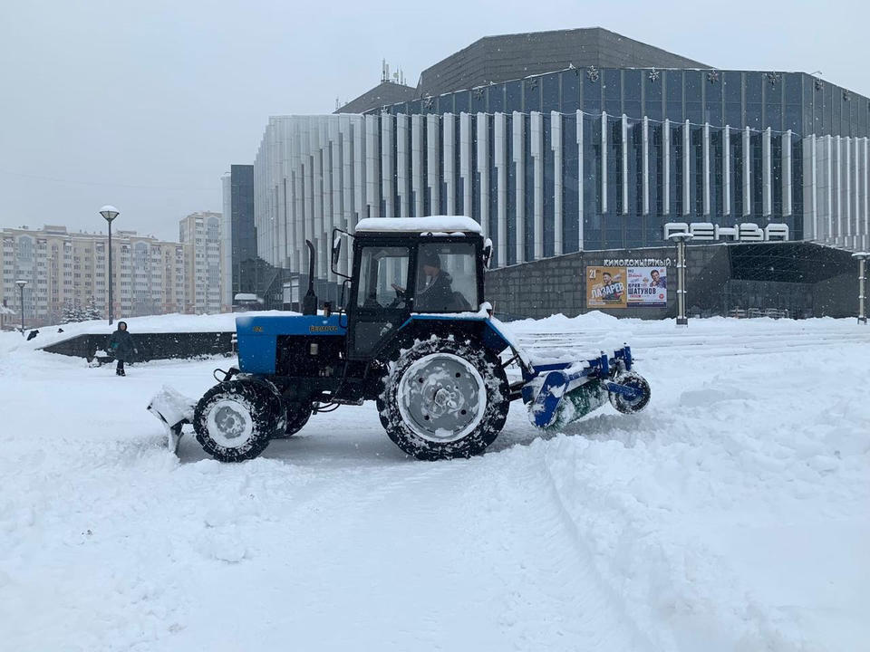 Для расчистки проездов, парковок и пешеходных зон возле филармонии и киноконцертного зала «Пенза» используется как подручный инвентарь, так и спецтехника.