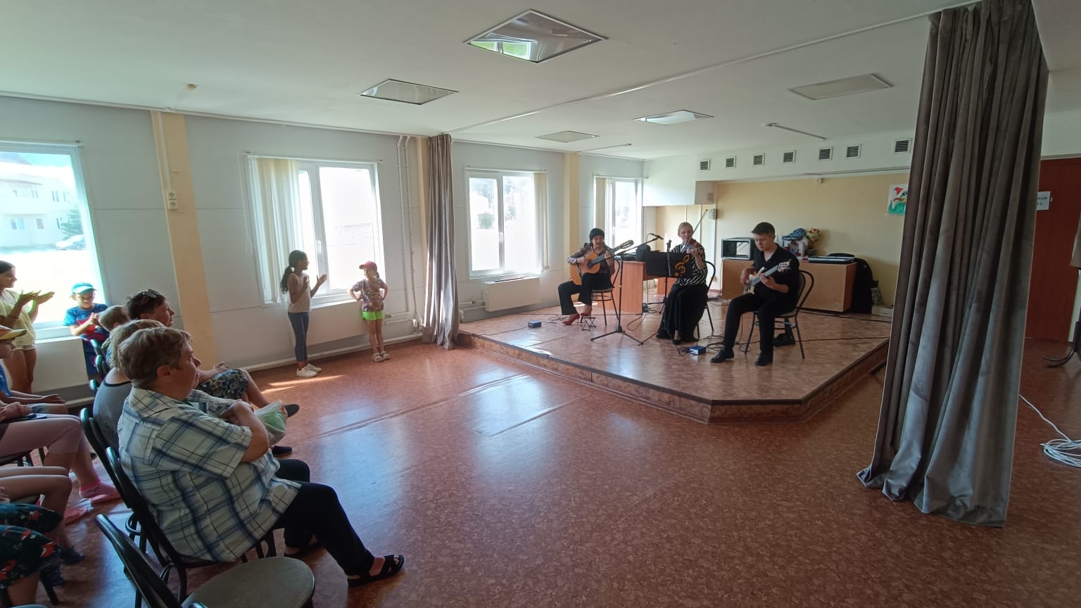 4 июня в пункте временного размещения, расположенном в с. Леонидовка, с концертной программой выступил творческий коллектив «Экспромт» (художественный руководитель — заслуженная артистка России Людмила Лузгина).
