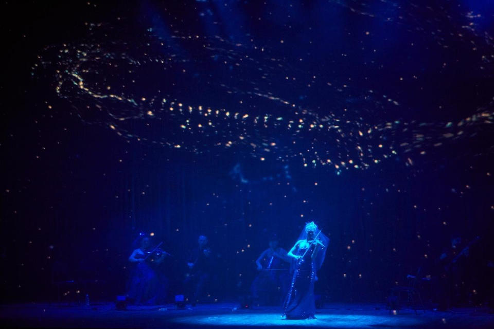«Музыка в темноте» от Евгении Зимы – мультимедийное шоу классической музыки в формате полного погружения. В нём искусно объединены 3D-графика и мастерство лучших петербургских музыкантов. Уникальный формат позволяет зрителю погрузиться в музыку, ощутить и услышать её совершенно на новом уровне. Всё это возможно благодаря эффектному визуальному контенту, мультимедийной графике, меппингу и живым съёмкам Вселенной.