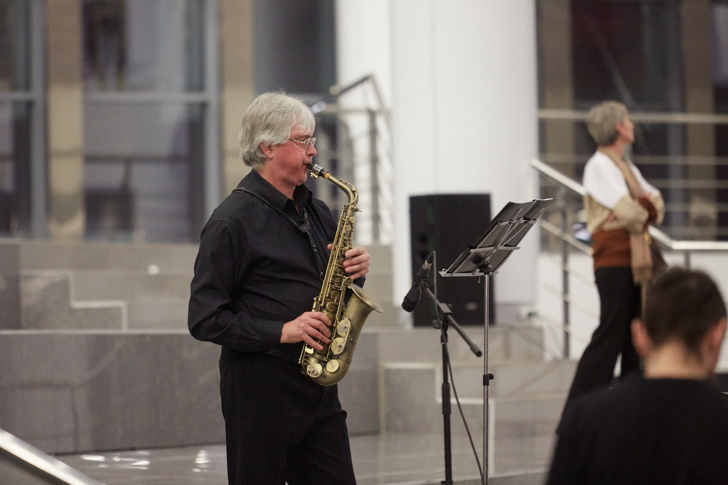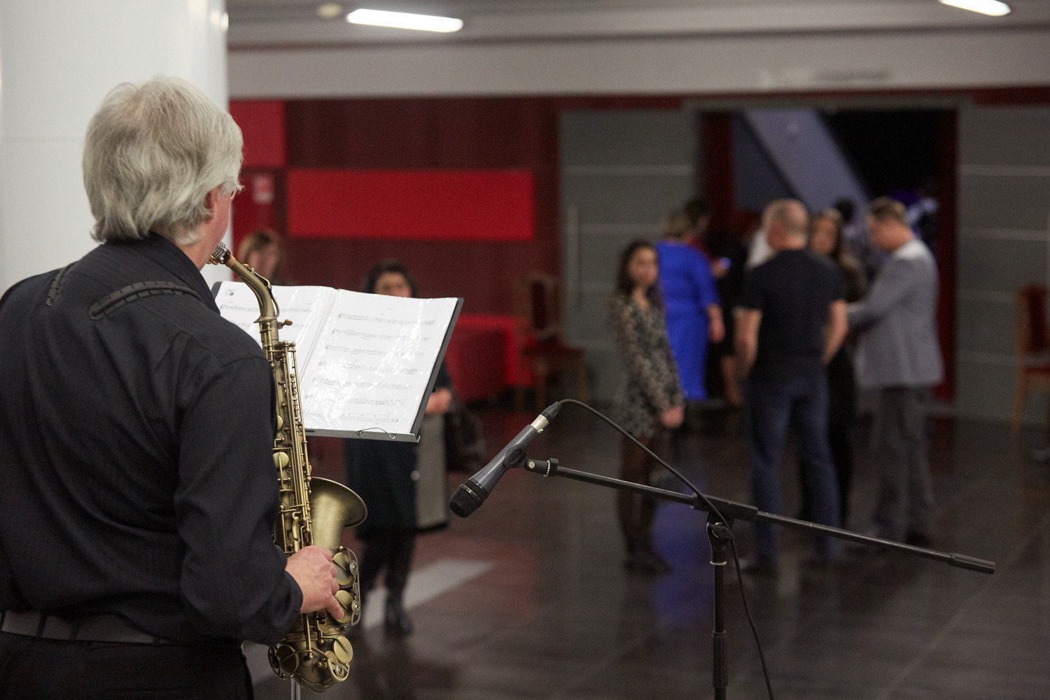 Перед концертом гостей вечера музыкальной программой из цикла «Добро пожаловать!» встречал артист эстрадно-джазового ансамбля «Экспресс-бэнд» Дмитрий Киселёв (саксофон).