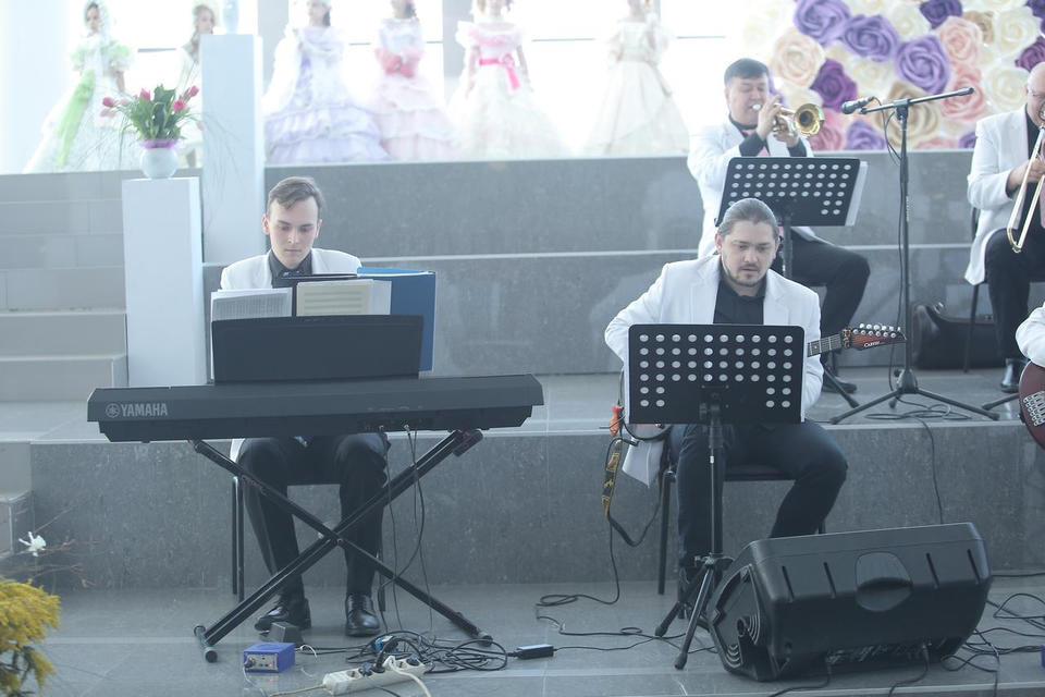 Перед торжеством гостей с программой «Добро пожаловать!» встречали музыканты эстрадно-джазового ансамбля «Экспресс-бэнд» п/у Юрия Белоногова.