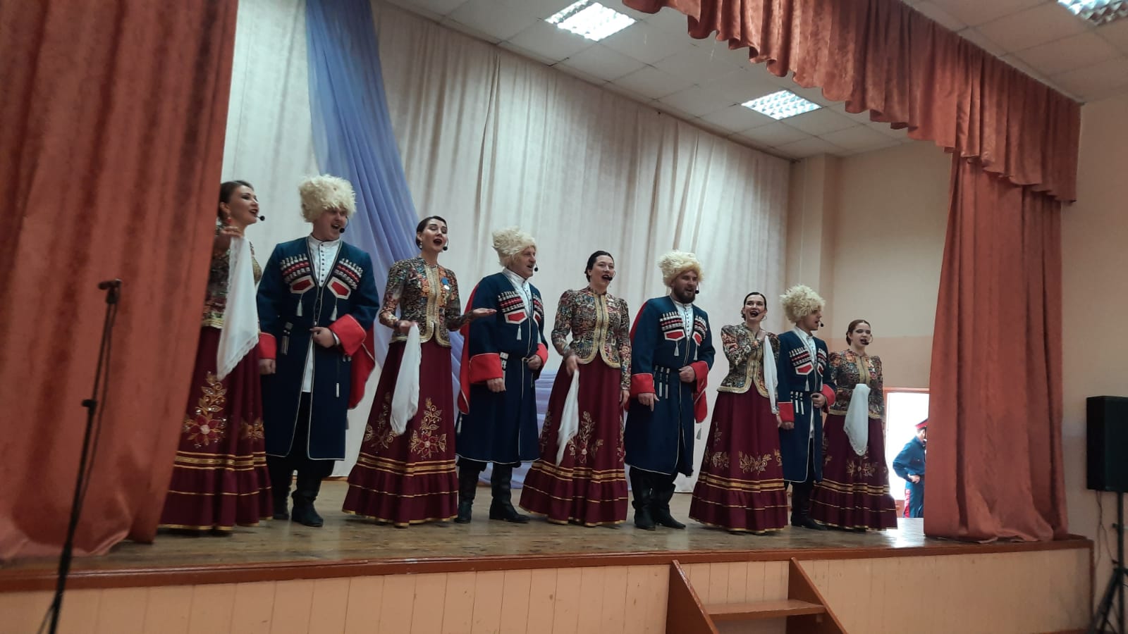 Коллектив представил учащимся патриотическую программу «За волю вольную, да за Победу!», в которую вошли казачьи песни и танцы, патриотические композиции, авторские песни, а также тематические хореографические номера.