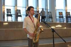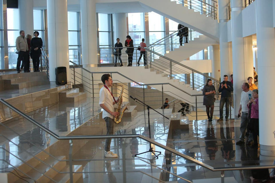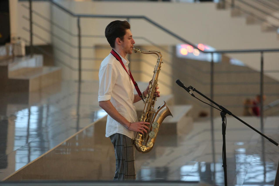 Перед концертом гостей с программой «Добро пожаловать!» встречал музыкант эстрадно-джазового ансамбля «Экспресс-бэнд» Семён Бойков.