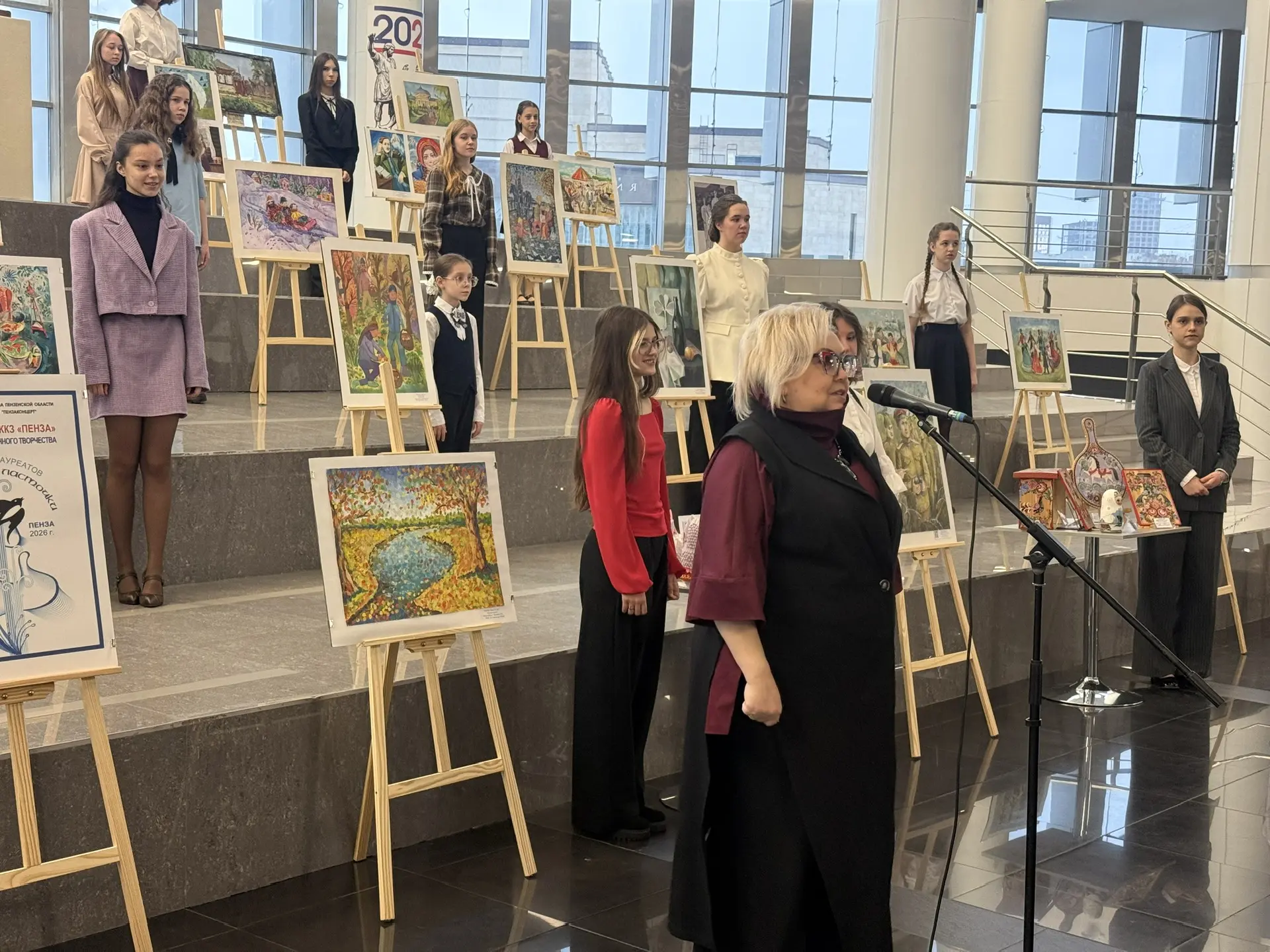 Перед началом концерта в фойе ККЗ открылась выставка изобразительного искусства, в которой приняли участие более 30 воспитанников детских художественных школ и школ искусств Пензенской области, а также студенты художественного училища им. К.А. Савицкого.