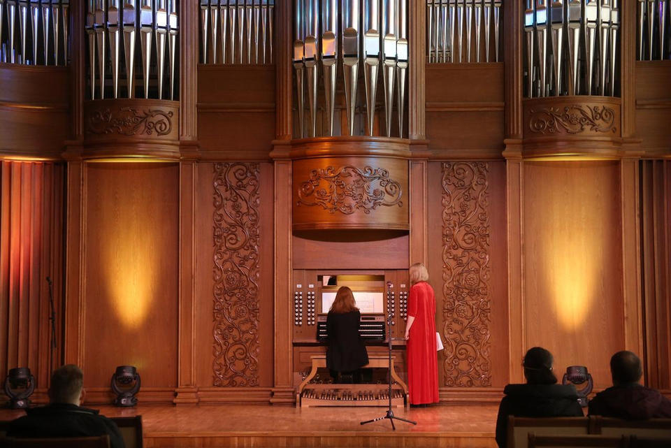 Марш «Прощание славянки» В. Агапкина, Токката И.С. Баха, «Героическая» пьеса С. Франка, музыка М. Таривердиева из к/ф «Семнадцать мгновений весны», «Бравурный марш» Ф. Мендельсона звучали 5 мая в Органном зале филармонии.