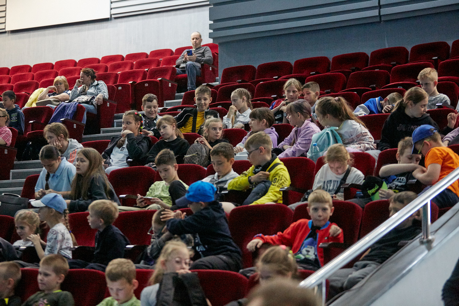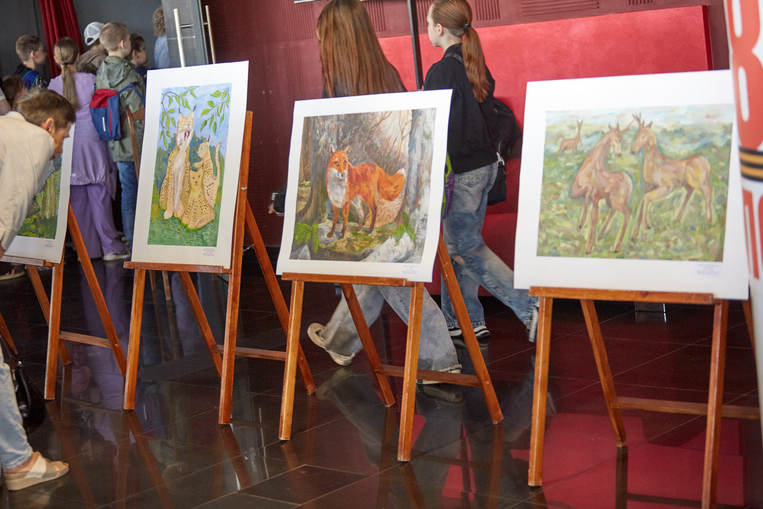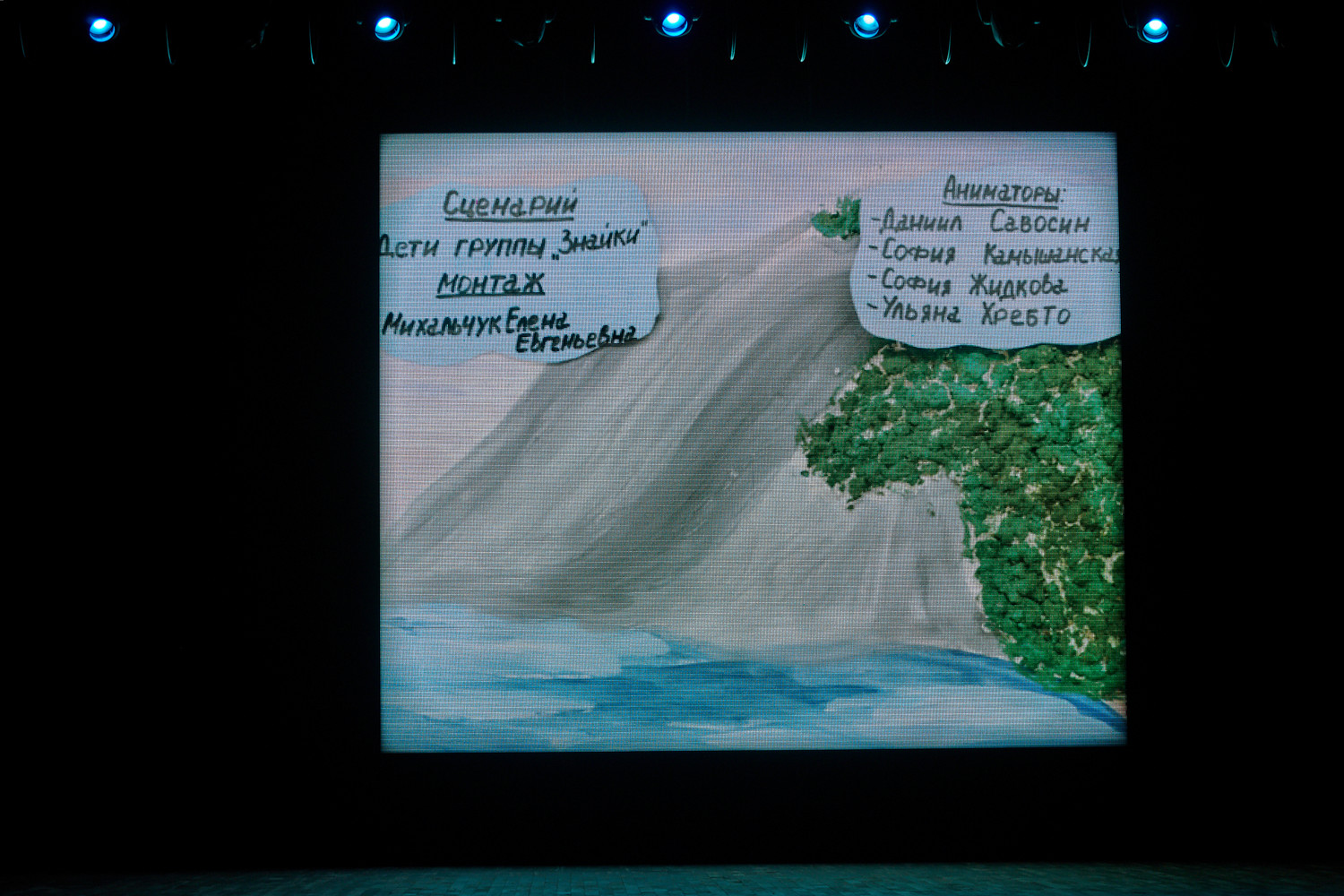 Программа кинофестиваля продолжилась в зале, где на большом экране были представлены социальные ролики и мультфильмы, посвященные охране окружающей среды и ответственному отношению к природным ресурсам, а также с яркими тематическими номерами выступили вокальный ансамбль «Домисолька» и театр танца «Провинция».