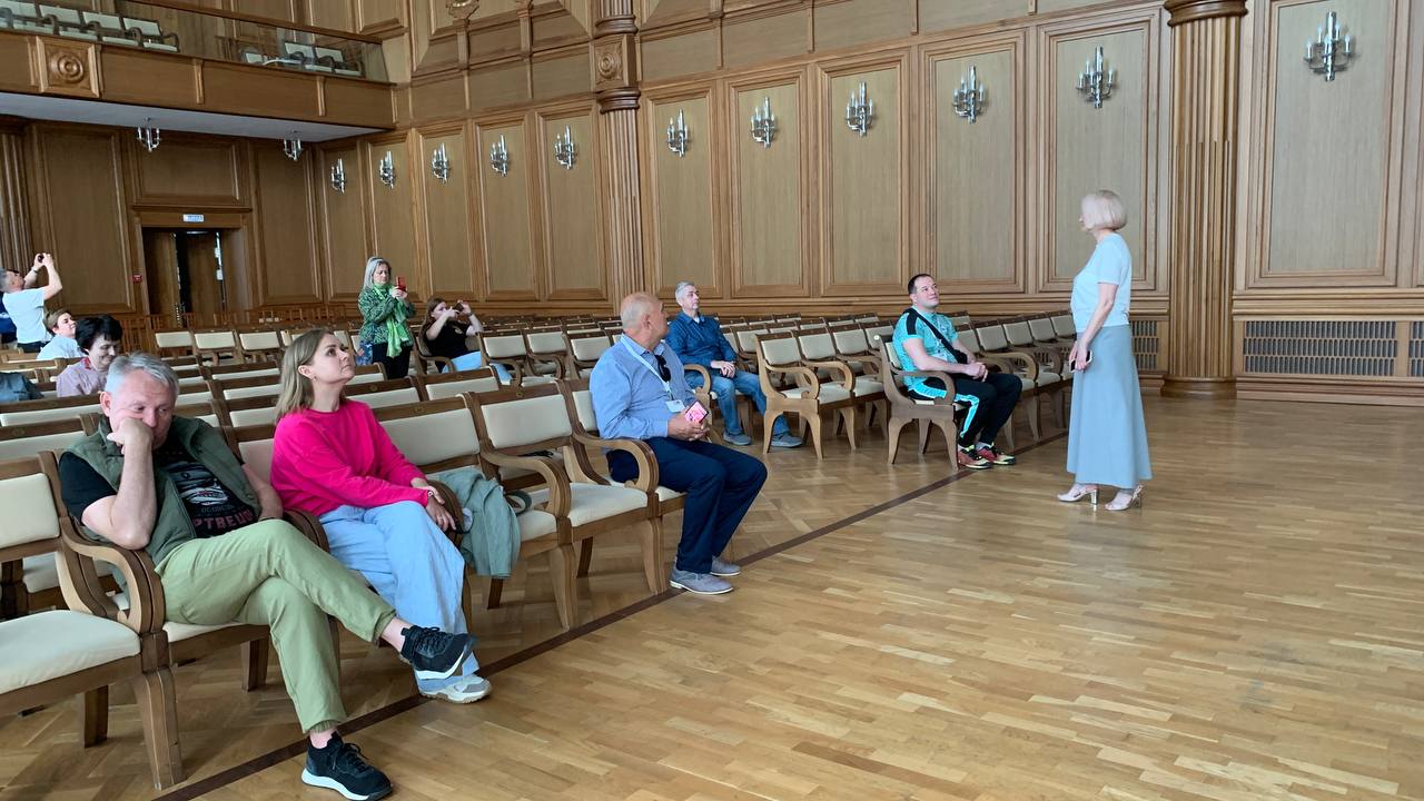 В ходе экскурсии гости узнали много интересных фактов об архитектуре здания, его внутреннем убранстве и техническом оснащении. Они поднялись на сцену и заглянули за кулисы.