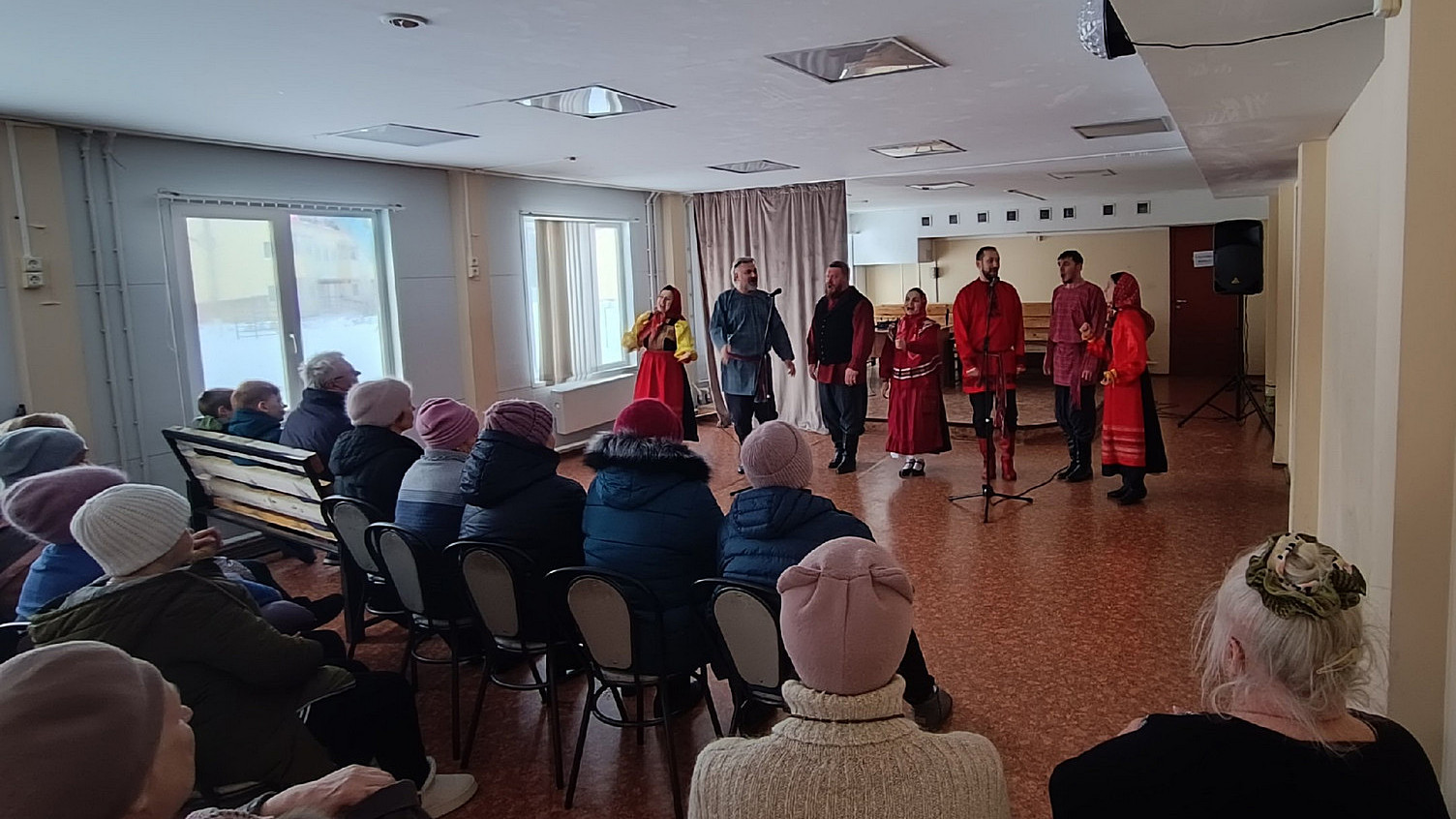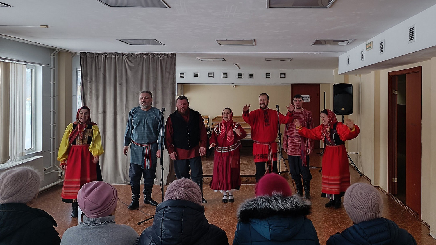 5 февраля в пункте временного размещения, расположенном в селе Леонидовка, с концертной программой выступили артисты ансамбля русской этнической музыки «Миряне» (руководитель — заслуженный работник культуры России Елена Пыкова).