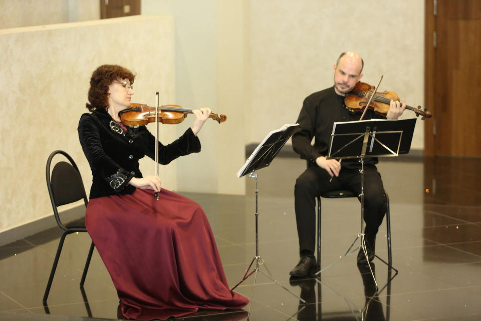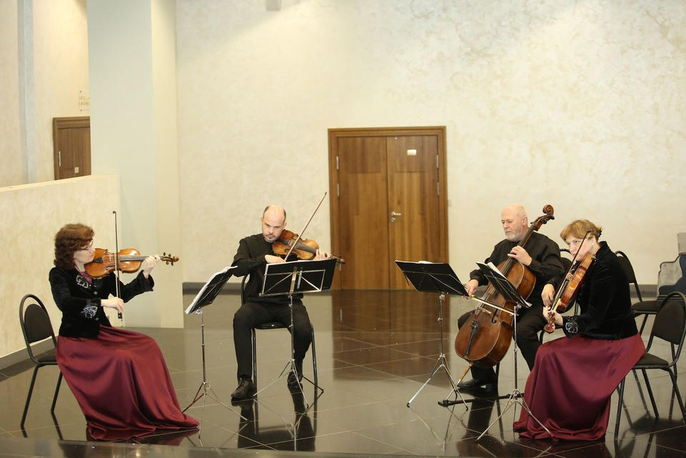 Гостей с программой «Добро пожаловать!» встречал струнный квартет «Премьера».