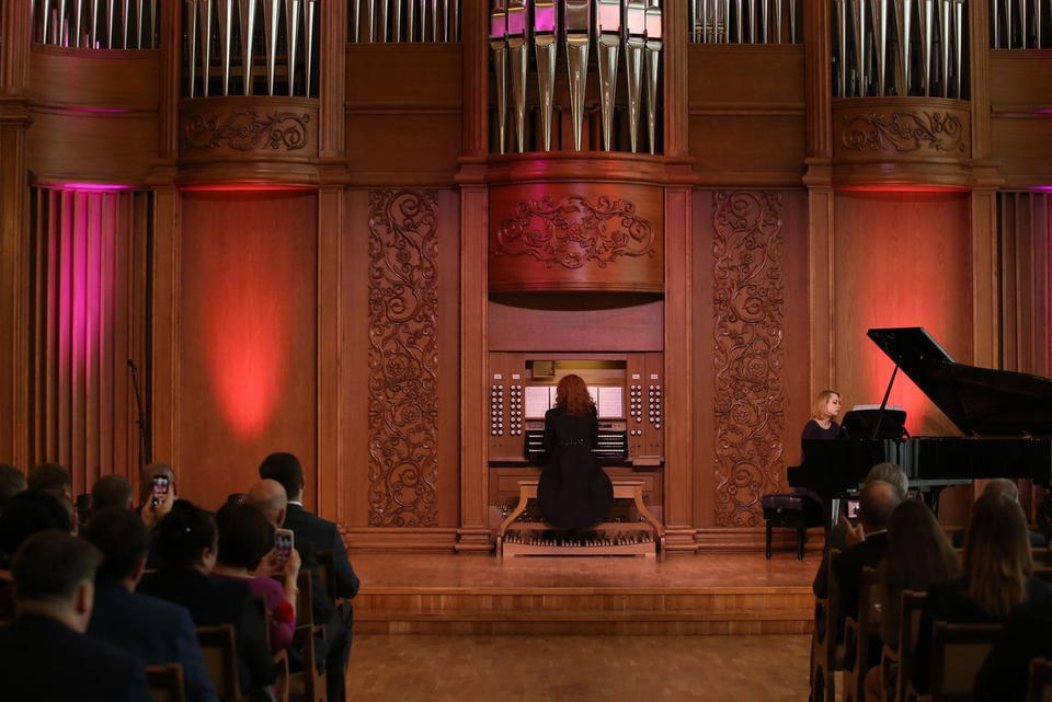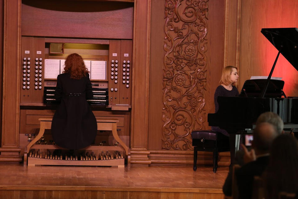 Торжество продолжилось концертной программой, участие в которой приняли Софья Семьянова (орган), Анастасия Суднева (фортепиано) и солисты Губернаторской симфонической капеллы – Гульсина Рафекова, Ольга Андреева, Руслан Проскуряков и Сергей Митрофанов, а также концертмейстер капеллы Елена Бовсуновская.