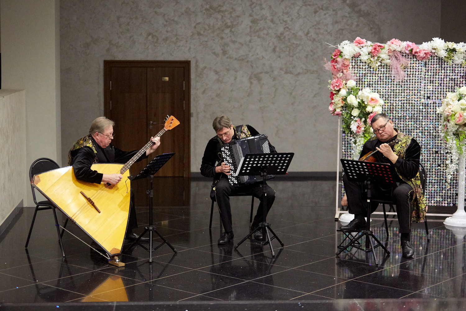 Перед концертом гостей вечера встречал ансамбль русских народных инструментов «Губерния» п/у заслуженного работника культуры Пензенской области Эдуарда Пятунина с музыкальной программой из цикла «Добро пожаловать!».