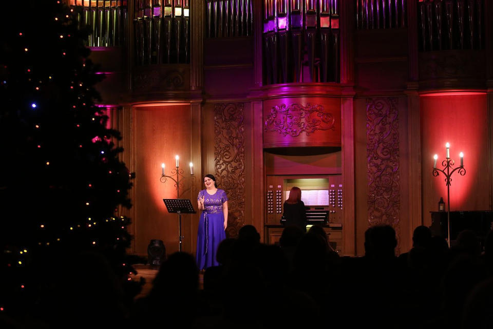 В исполнении артисток прозвучали Рождественская песня «Ночь тиха», Ave Maria Дж. Каччини, ария Альмиры из оперы «Ринальдо» Г.Ф. Генделя, хоральные прелюдии «Из глубины взываю к тебе, Господи» и «Старый год уходит» И.С. Баха, Китайский танец и танец феи Драже из балета «Щелкунчик» П.И. Чайковского и другие произведения.