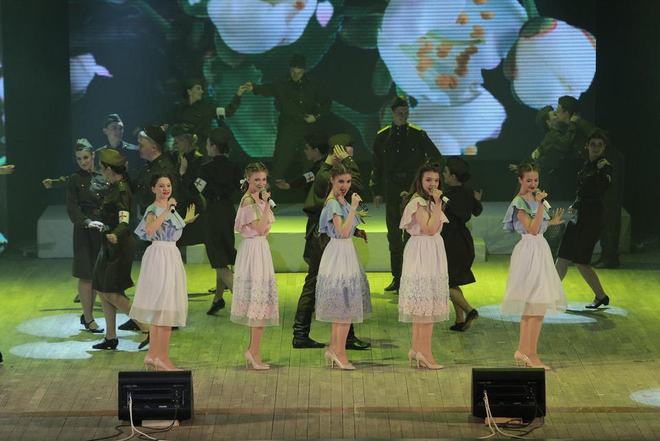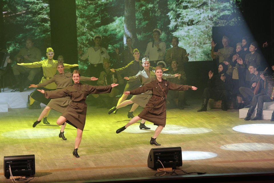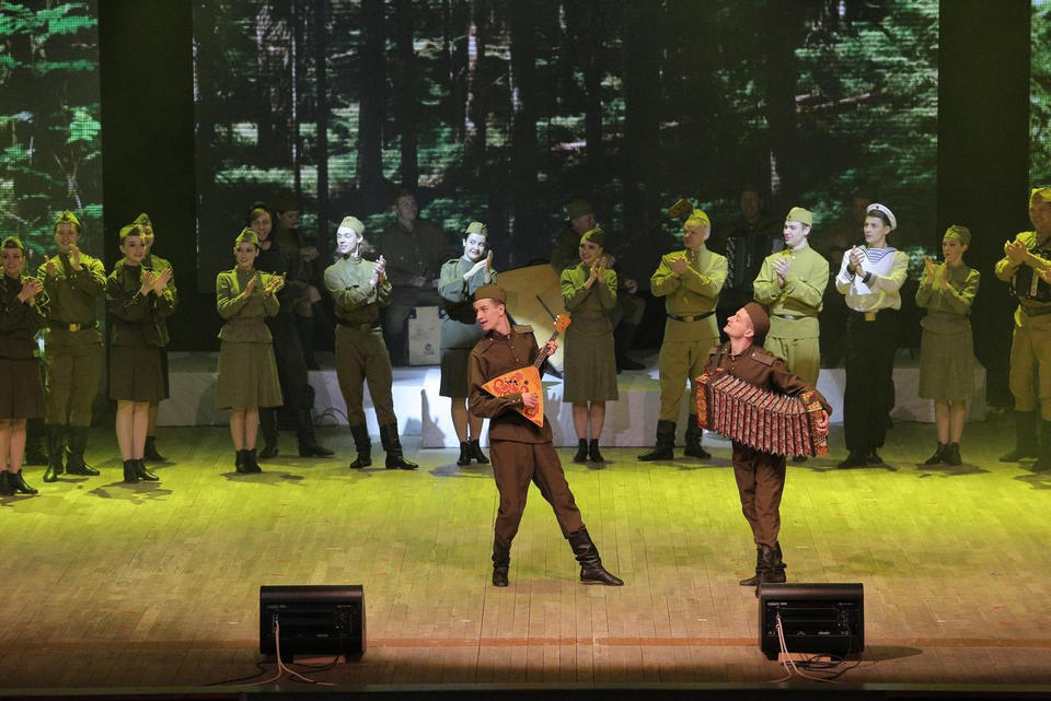 В исполнении артистов прозвучали любимые песни военных лет, воспевающие подвиг советского народа на фронте и в тылу в годы Великой Отечественной войны: «Живая память», «Шёл солдат», «10 батальон», «Ехал я из Берлина», «Священная война», «Як истребитель», «У безымянного поселка», «Катюша» и, конечно, «День Победы».