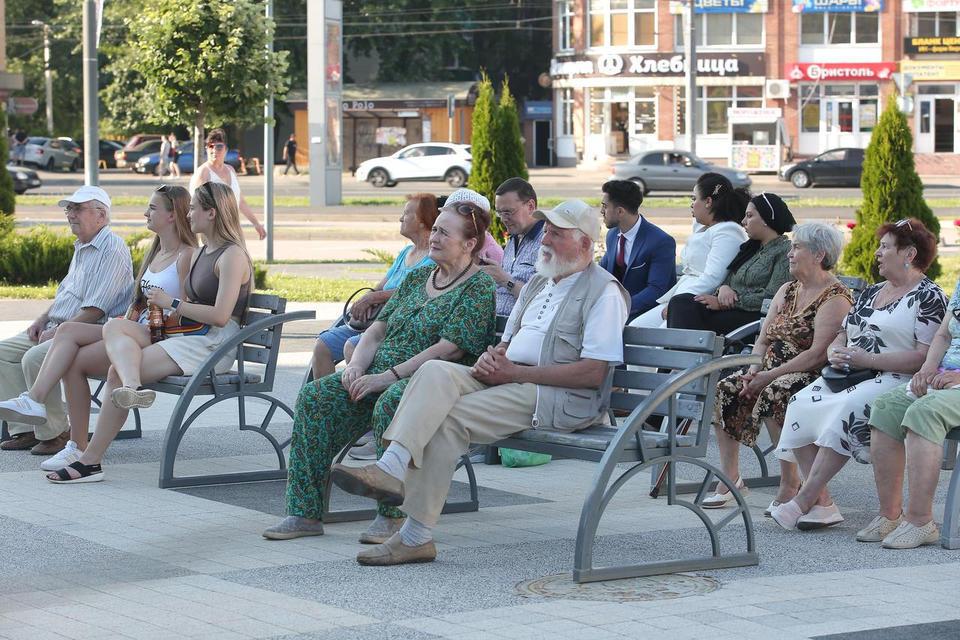 7 июля на площади перед центральным входом в здание филармонии выступили солисты эстрадно-джазовго ансамбля «Экспресс-бэнд».