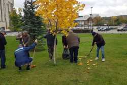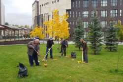 Работники очистили газоны и площади от мусора и опавшей листвы.