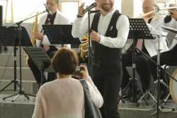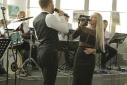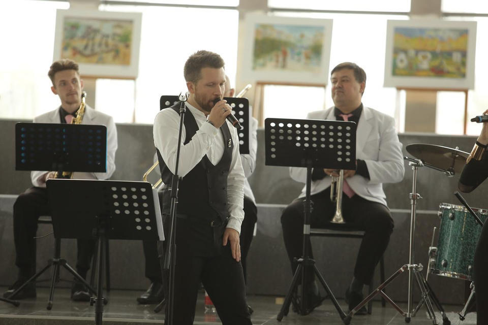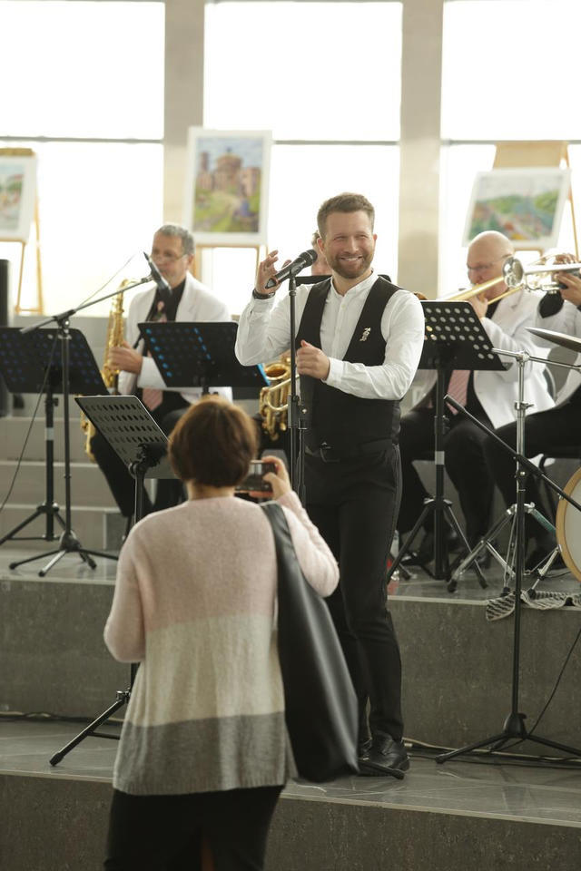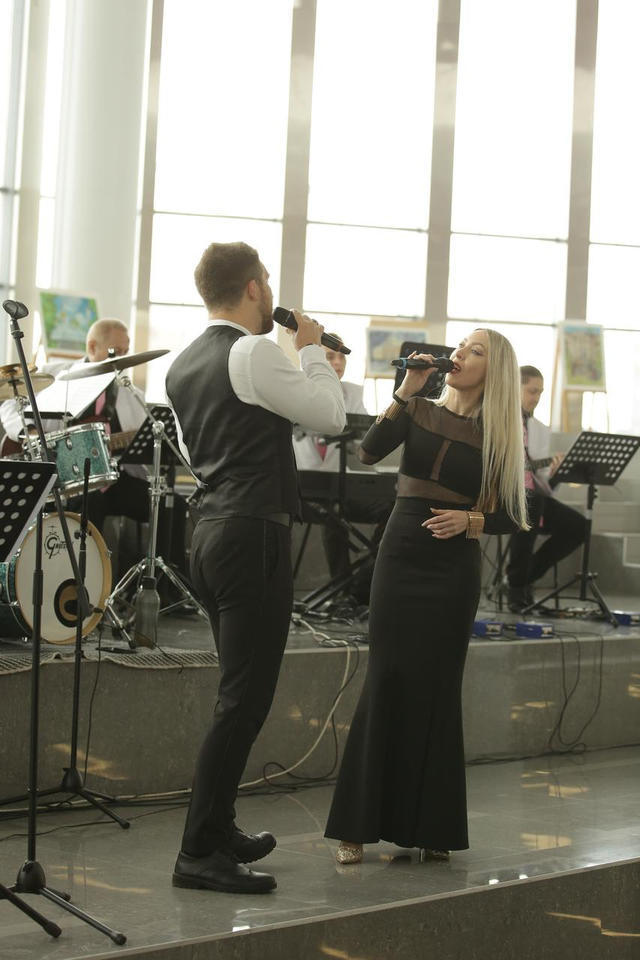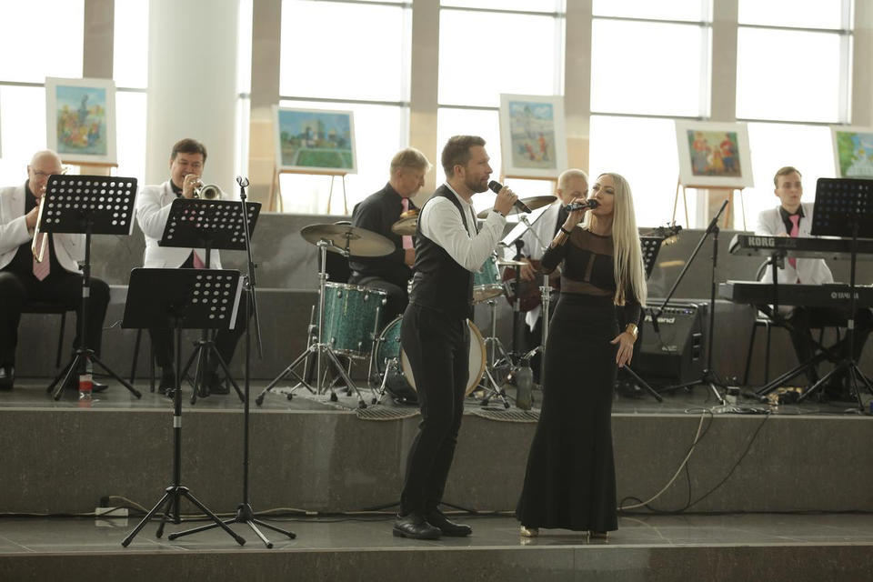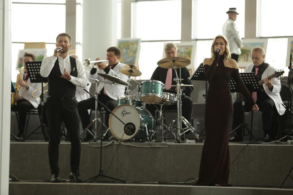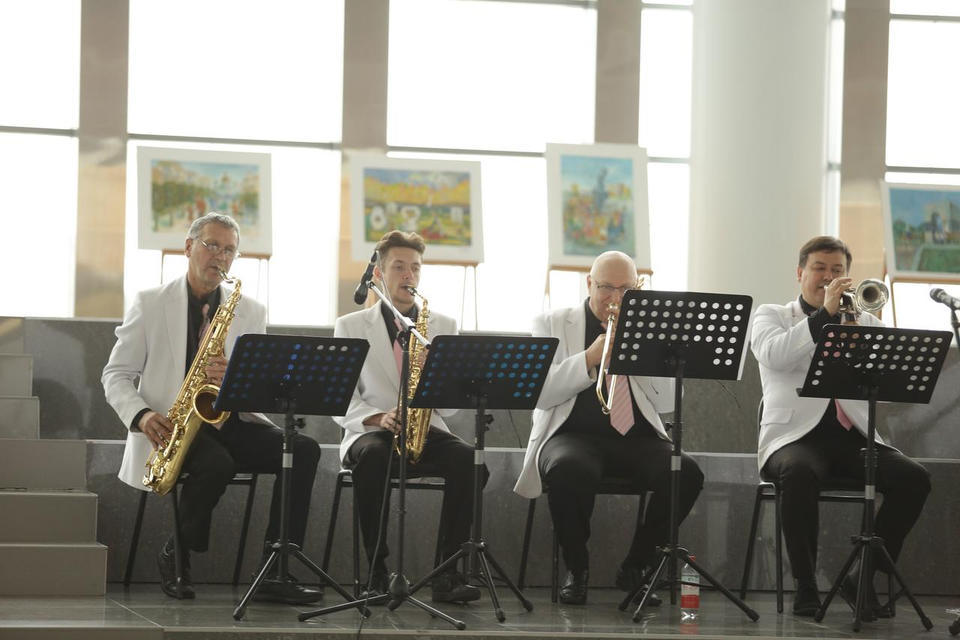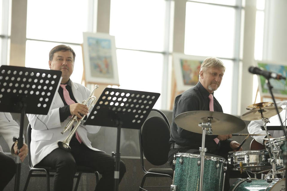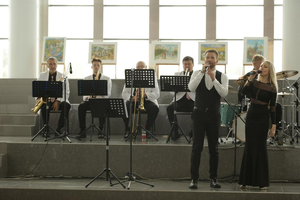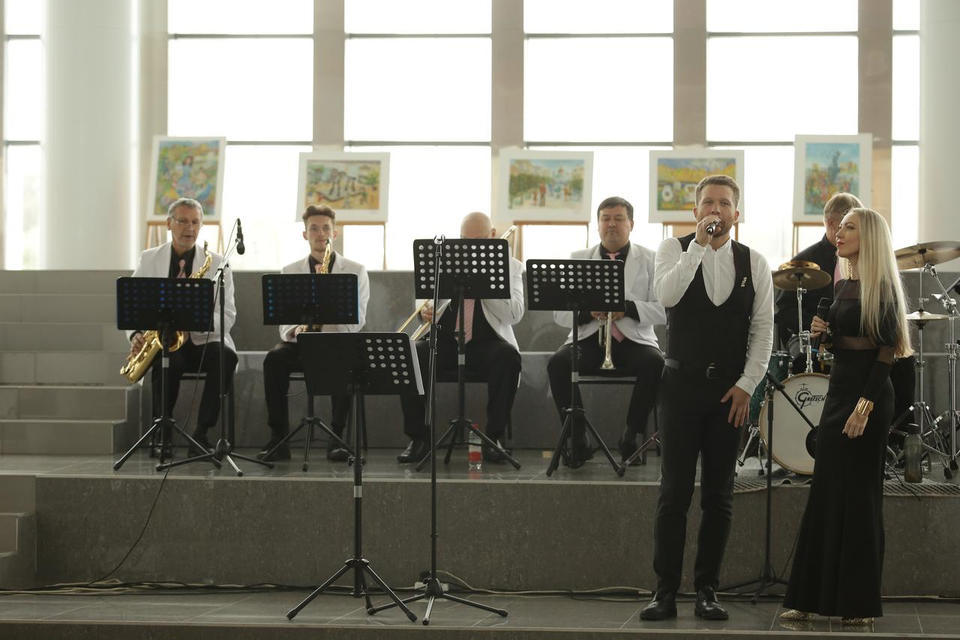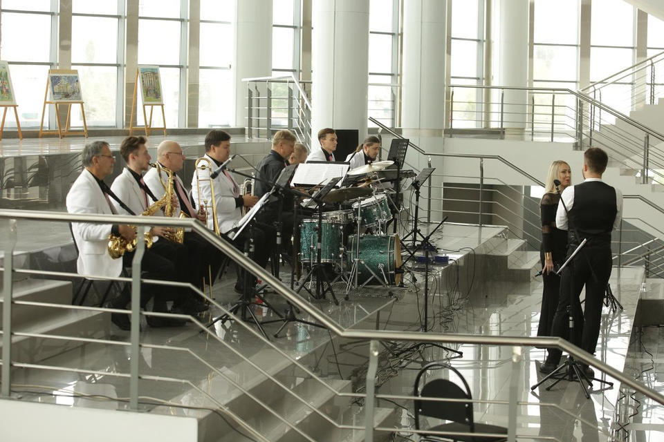 Перед официальной частью с праздничной программой для гостей торжества выступил эстрадно-джазовый ансамбль «Экспресс-бэнд» п/у Юрия Белоногова.