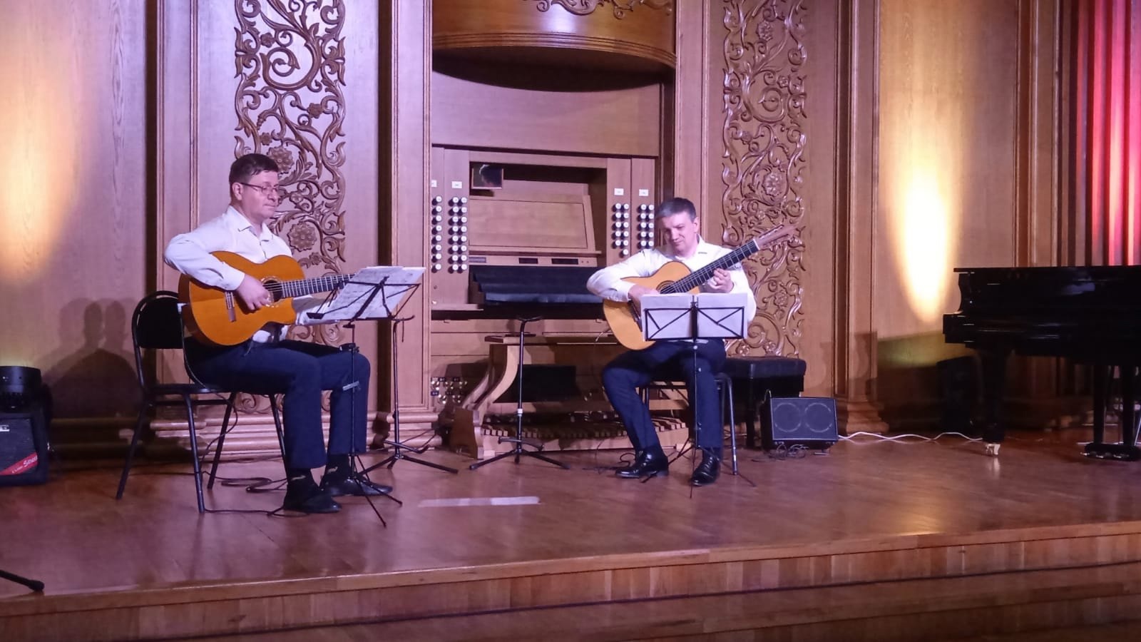 7 февраля в филармонии состоялся концерт дуэта семиструнных гитар «Русские гитары» в исполнении Владимира Сумина и Владимира Маркушевича.