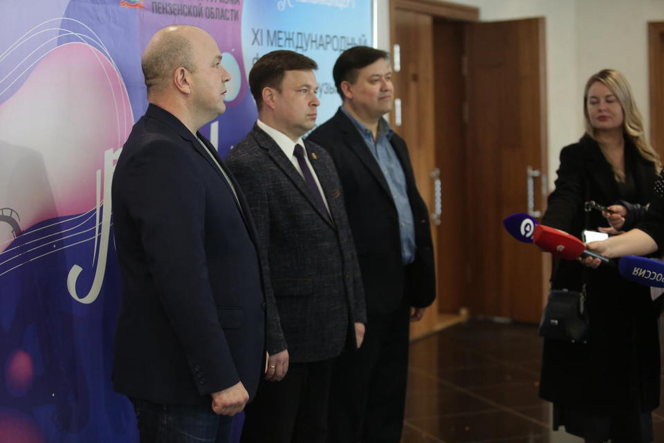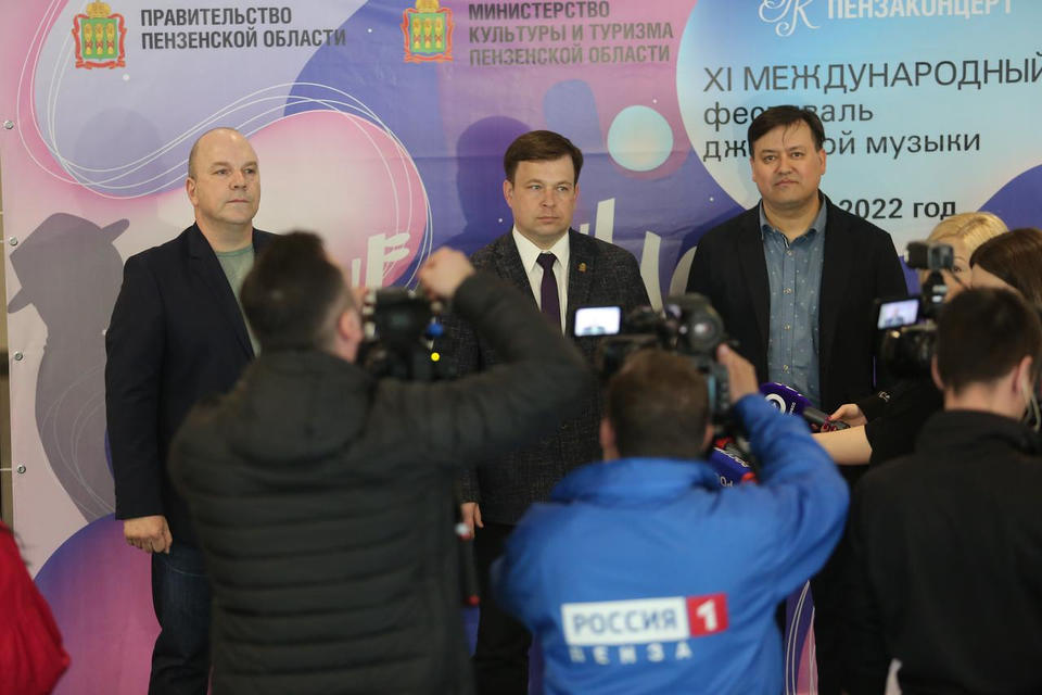 На вопросы журналистов ответили Министр культуры и туризма Пензенской области Сергей Бычков, Директор ГАУК ПО «Пензаконцерт» Андрей Мамонов и руководитель эстрадно-джазового ансамбля «Экспресс-бэнд» Юрий Белоногов.