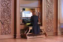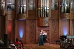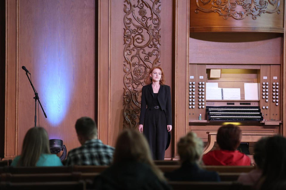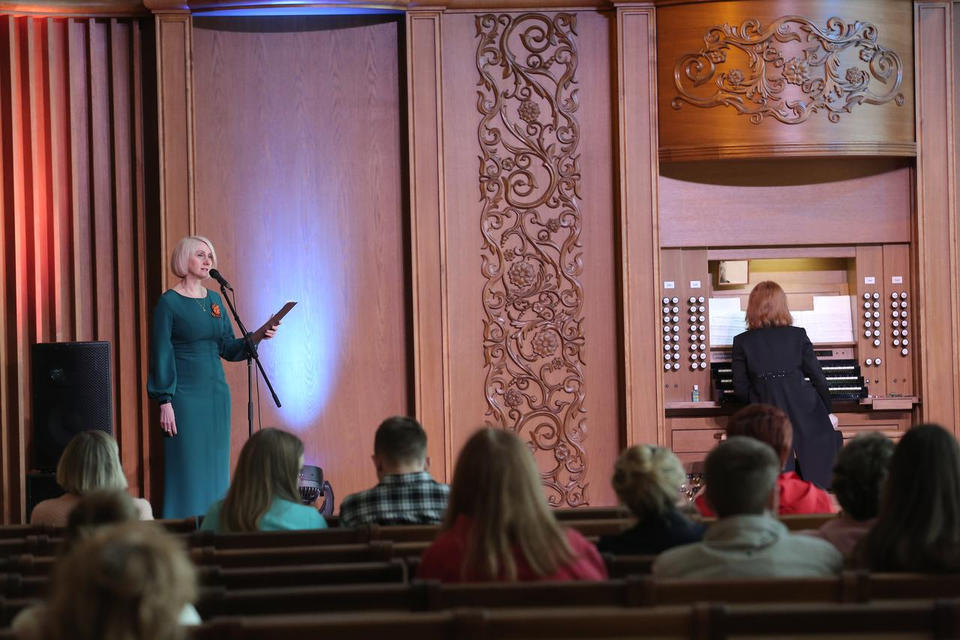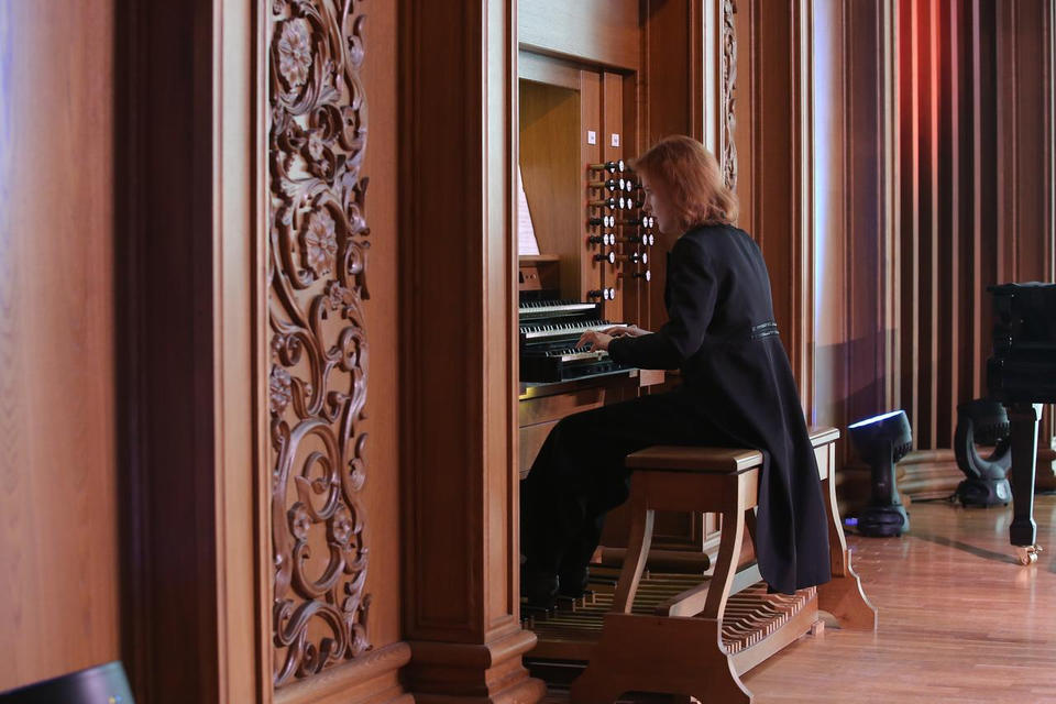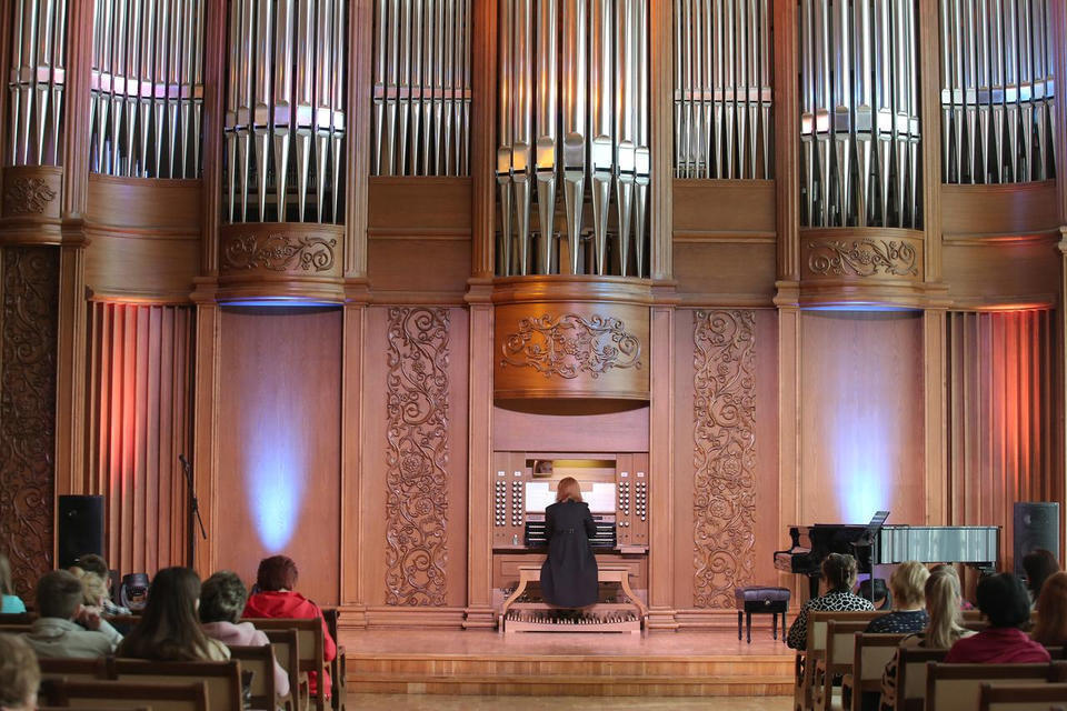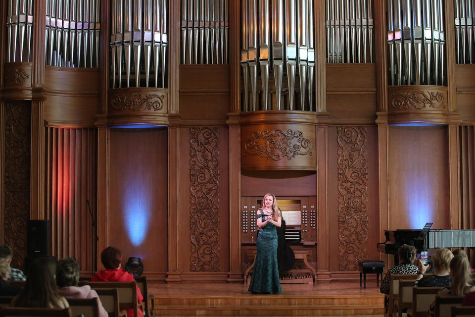 В преддверии Дня Победы - 8 мая - в Органном зале филармонии с программой «Чтобы помнили...» выступили Софья Семьянова (орган) и солистка Губернаторской симфонической капеллы Ольга Андреева.