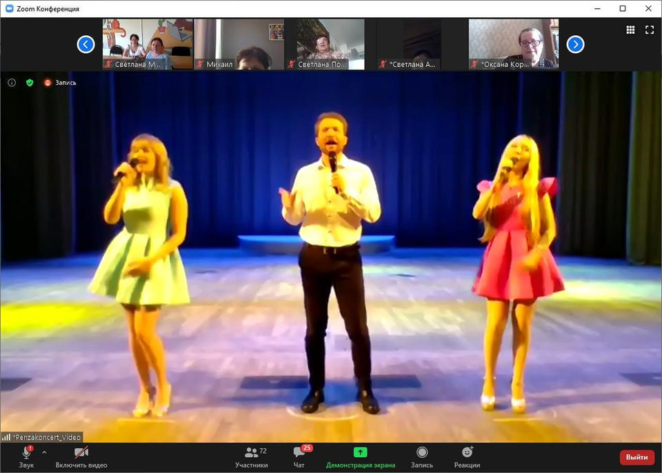 Участие в онлайн-мероприятии приняли артисты «Пензаконцерта»: солисты эстрадно-джазового ансамбля «Экспресс-бэнд» Светлана Бисяева, Анастасия Воробьёва и Александр Яковлев исполнили песню «Мы желаем счастья Вам!».