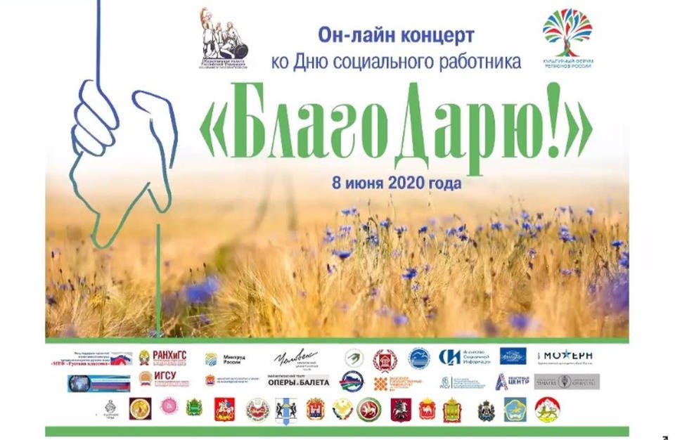 День социального работника отмечается в России 8 июня. Для представителей отрасли, помогающих пожилым людям и всем нуждающимся в условиях коронавирусной пандемии, в 16:00 на платформе ZOOM состоялся онлайн-концерт «БлагоДарю» с участием известных артистов из разных регионов России.
