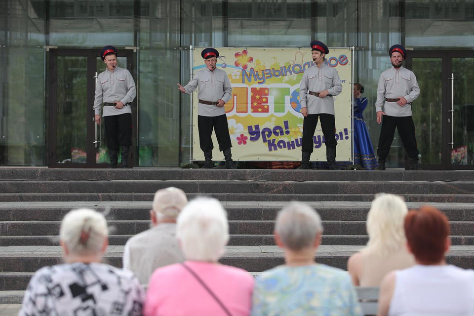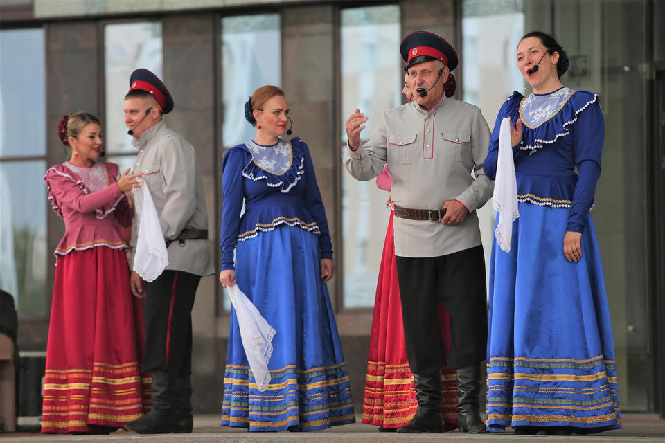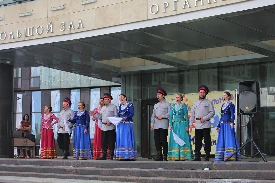 8 июля в рамках акции «Вот оно какое – наше лето!» на площади перед центральным входом в здание филармонии выступил хор ансамбля песни и танца «Казачья застава».